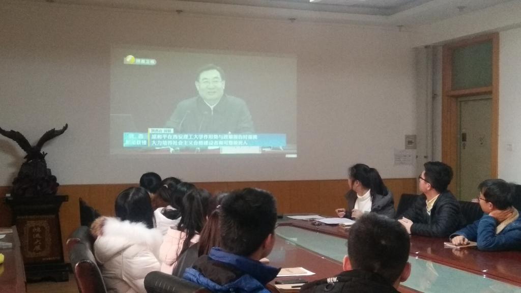 各支部成员通过集中观看“陕西新闻——省委书记胡和平来校作形势与政策报告”视频,了解2018年以来陕西经济社会发展情况,陕西发展枢纽经济、门户经济、流动经济的重要意义、历史基础和巨大潜力。支部书记带领支部成员重点学习了胡和平书记对西理学子提出的“志存高远,勇于追梦;珍惜韶华,励志勤学;立德修身,引领新风;艰苦奋斗,刻苦磨练”四点希望。