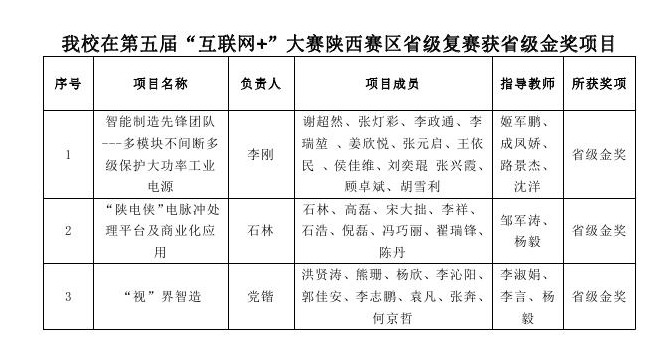 自开赛以来,我院项目“陕电侠——电脉冲处理平台及商业化应用”便开始精心策划,认真准备。项目成员以严谨负责的做事态度和拼搏进取的奋斗精神,不断完善该项目的各项内容、反复提高项目计划书、PPT以及项目视频的质量和水平,终于在团队的共同努力以及指导教师、专家顾问的关怀指导下,夺得了陕西省金奖的良好佳绩。