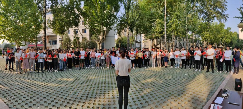 为庆祝新中国成立70周年,深入学习贯彻“不忘初心、牢记使命”主题教育精神,9月30日下午,材料学院在金花校区明德广场开展“筑梦远航新时代,材料学子庆华诞”主题党日活动。学院党委副书记兼副院长郝敏敏,学工办辅导员,全体学生党员、入党积极分子参加活动。