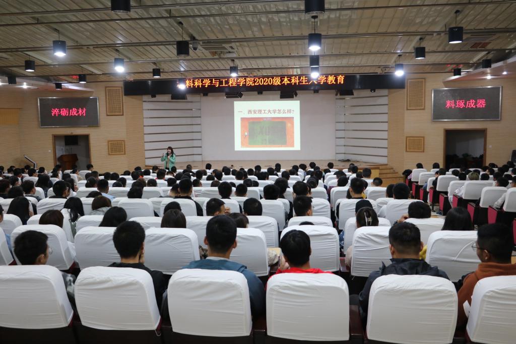 10月13日晚七点,材料学院在曲江逸夫科技馆报告厅召开2020级本科生入学教育大会。院党委副书记兼副院长郝敏敏,2020级辅导员及全体新生参加了大会,会议由院学工办主任刘东主持。
