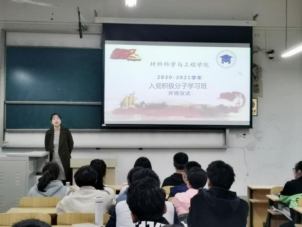 10月18日晚,材料学院在教八-408教室举行了2020-2021学年入党积极分子学习班开班仪式,学院学生党建工作负责人刘艾京老师、学院曲江校区全体入党积极分子参加,会议由学习班指导老师刘洋主持。