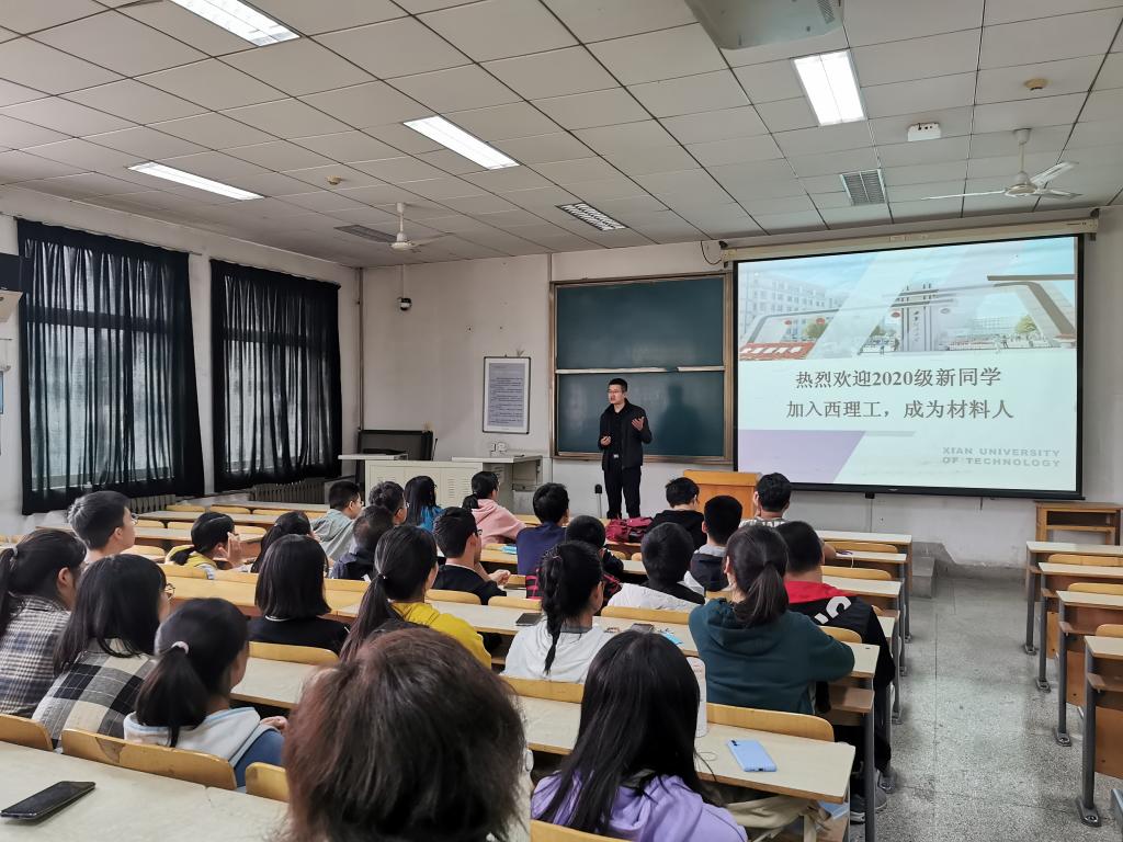 2020年10月21日,材料学院组织2020级材料专业学生在10-304开展入学专业教育,主讲人是材料系副主任李福平老师。