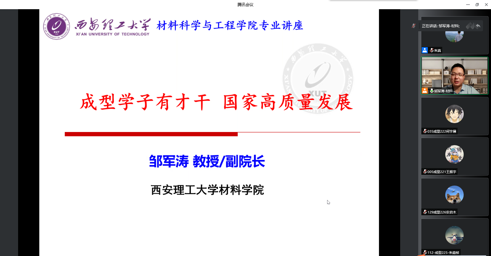 为帮助2022级新生开好头、起好步、奠好基,9月15日至20日,材料学院分专业分时段在线上开展2022级新生专业教育。校技术研究院院长、材料物理专业带头人游才印,材料学院副院长邹军涛、李喜飞,各系主任、新生班级导师、辅导员及全体新生参加。