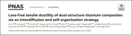 近日,西安理工大学材料学院粉末冶金与金属基复合材料课题组在粉末冶金钛基复合材料强韧性协同匹配方面取得重要突破,研究论文“Loss-free Tensile Ductility of Dual-structure Titanium Composites via Interdiffusion and Self-organization Strategy”发表于《Proceedings of the National Academy of Sciences of the United States of America》(IF=12.779),简称PNAS。PNAS作为国际顶级学术杂志,主要刊载研究报告、学术评论、学科回顾及前瞻、观点展示、学术论文以及美国科学院学术动态报道等。