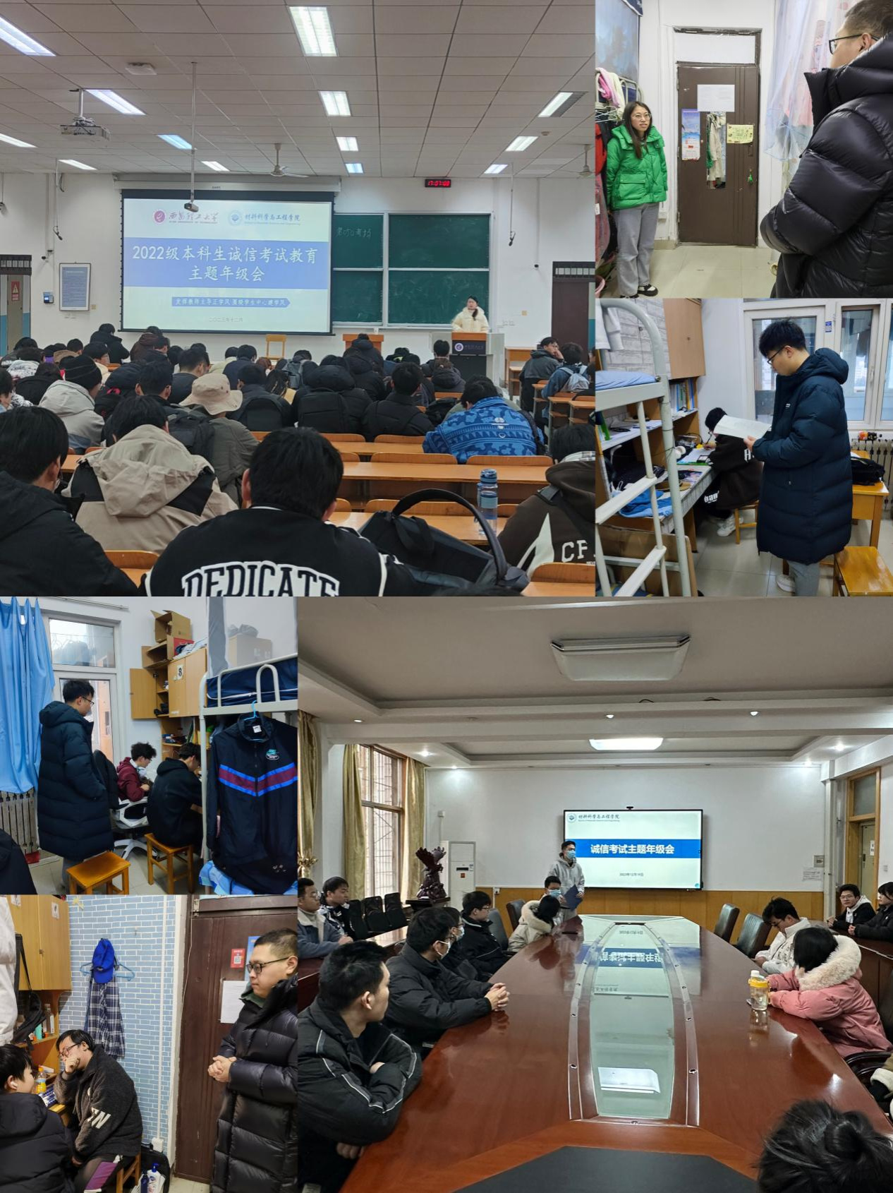 学院以《西安理工大学材料科学与工程学院2023年秋季学期学风建设方案》为抓手,从教学督导组、学风督导组全面面向学院教师、学生开展诚信考试工作安排。学工办辅导员结合“三深入”工作,分别在课堂、宿舍、班级内部开展诚信考试教育,并通过线上线下相结合的方式就期末考试、大学生英语四六级考试、研究生入学考试等纪律进行强调。要求学生提升思想认识、严肃考试纪律、规范考试行为,营造诚信考试的良好氛围。