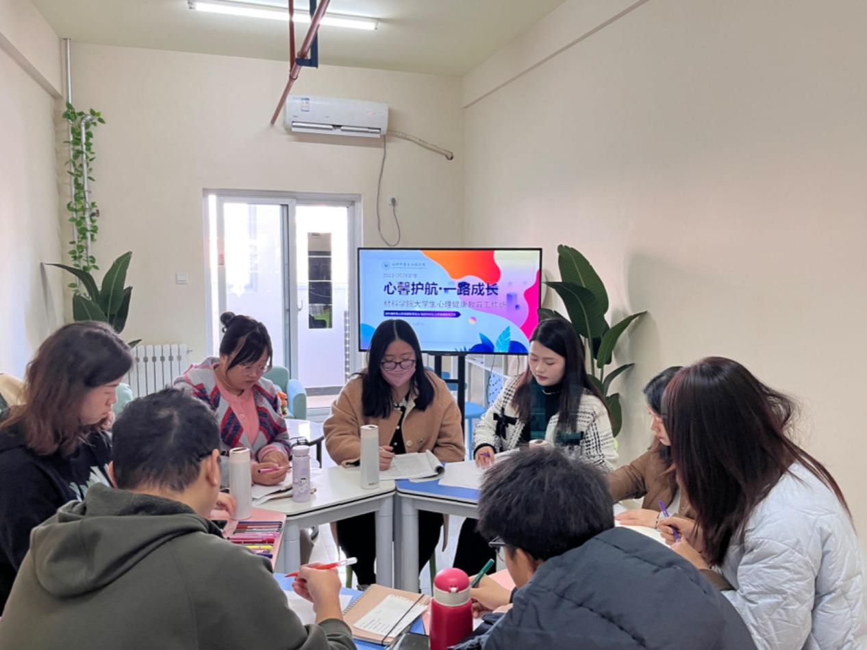 为提升大学生心理健康教育工作水平,进一步增强我院心理工作过程的针对性、时效性,提升辅导员工作能力。12月1日,材料学院在曲江校区一站式社区11号公寓心理咨询室开展大学生心理健康教育工作坊活动,本次主题为辅导员压力疏导与心理咨询培训。工作坊活动邀请大学生心理健康中心刘洋主持,材料学院全体辅导员参加。