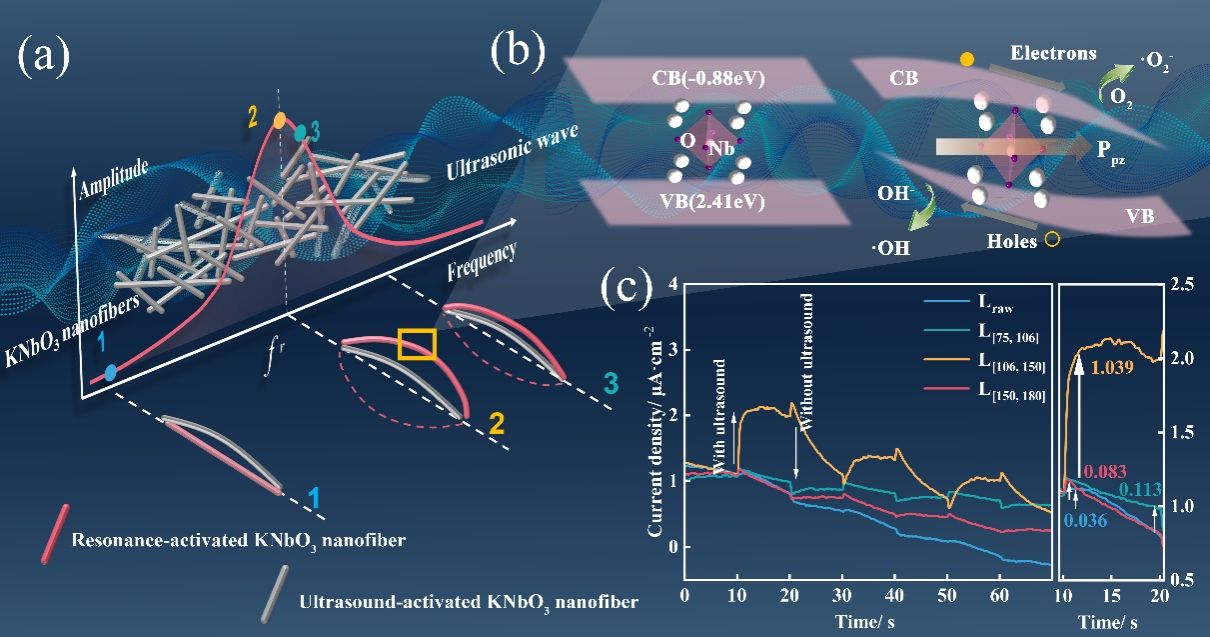 图1.KNbO3纳米纤维共振增强压电催化的机制。