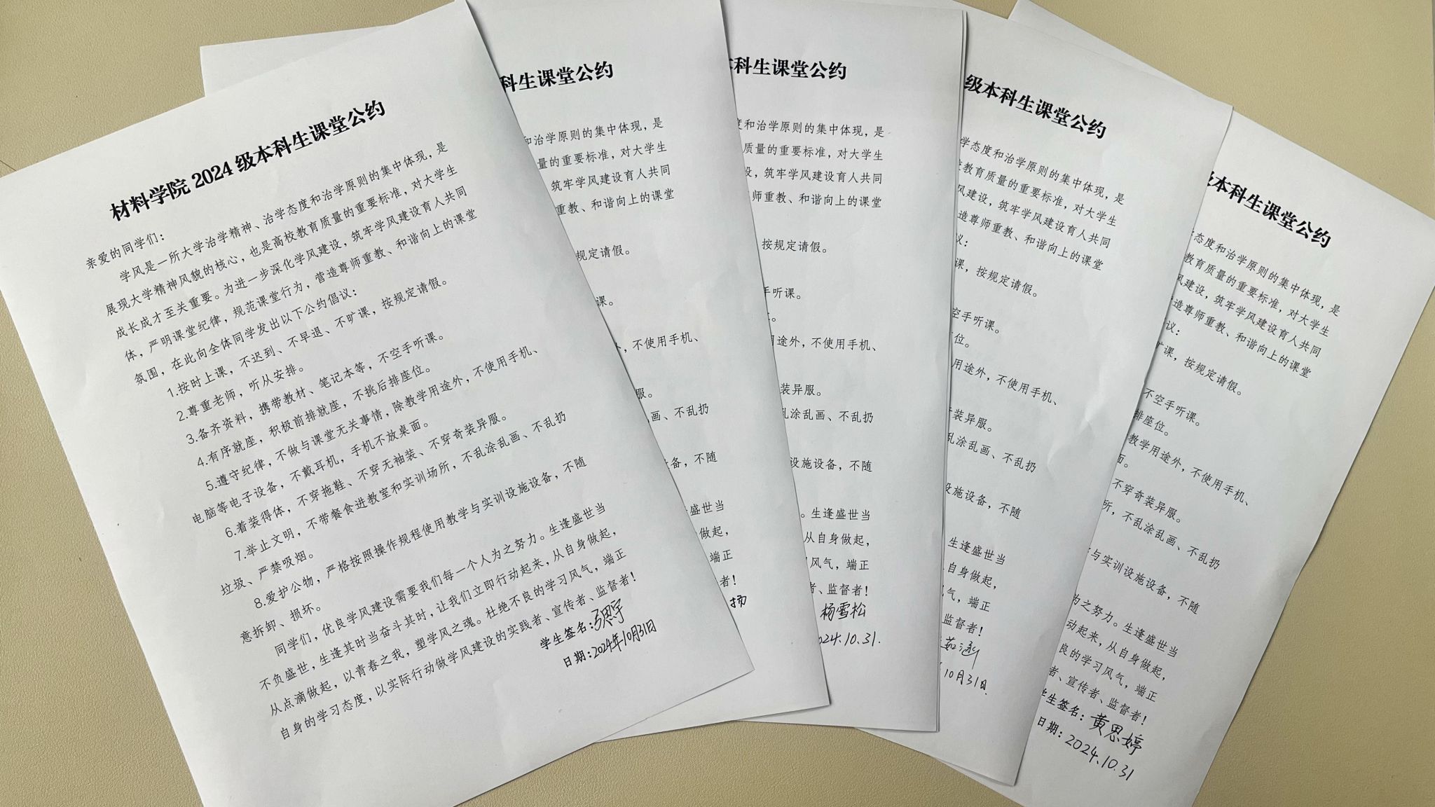 动员会上,新生辅导员向全体学生发出了深化学风建设,严明课堂纪律,规范课堂行为,营造尊师重教、和谐向上的课堂氛围的倡议。学生干部带头签署课堂公约倡议书,发挥模范带头作用,带动鼓励更多同学参与到学风建设中,以形成全年级上下共同努力的良好局面。