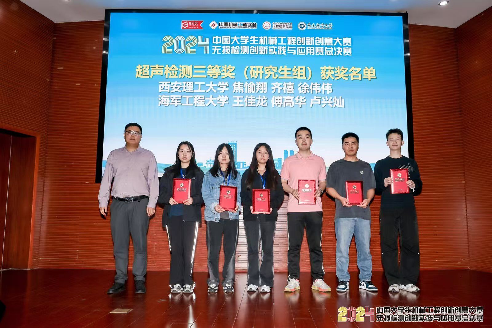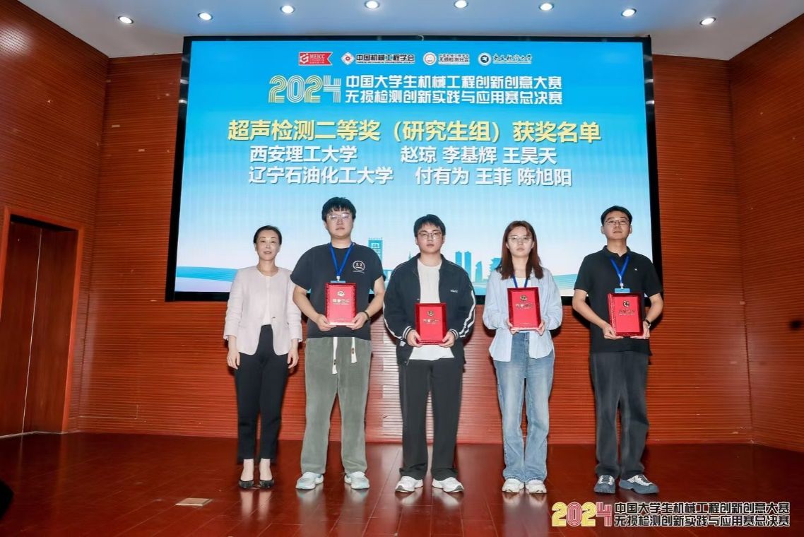 我校在本次大赛共取得两银一铜的好成绩。材料学院孙少东教授和张赛飞老师指导的赵琼、李基辉、王昊天获得超声检测研究生组第二名;孙少东教授和崔杰高级工程师指导的焦愉翔、齐禧、徐伟伟获得超声检测研究生组第三名。此外,张赛飞老师和王武孝老师指导的许睿、张卓卓、朱彬燕获得超声检测本科组第二名。比赛过程中,我校学子不畏强手,奋力拼搏,充分展现了良好的精神风貌、熟练的实验操作技能和扎实的专业基础知识。本次大赛能够取得好成绩,不仅展现了西理工材料学子“材料强国、使命有我”的家国情怀,同时彰显了学校在“实践育人”方面所取得的显著成效。