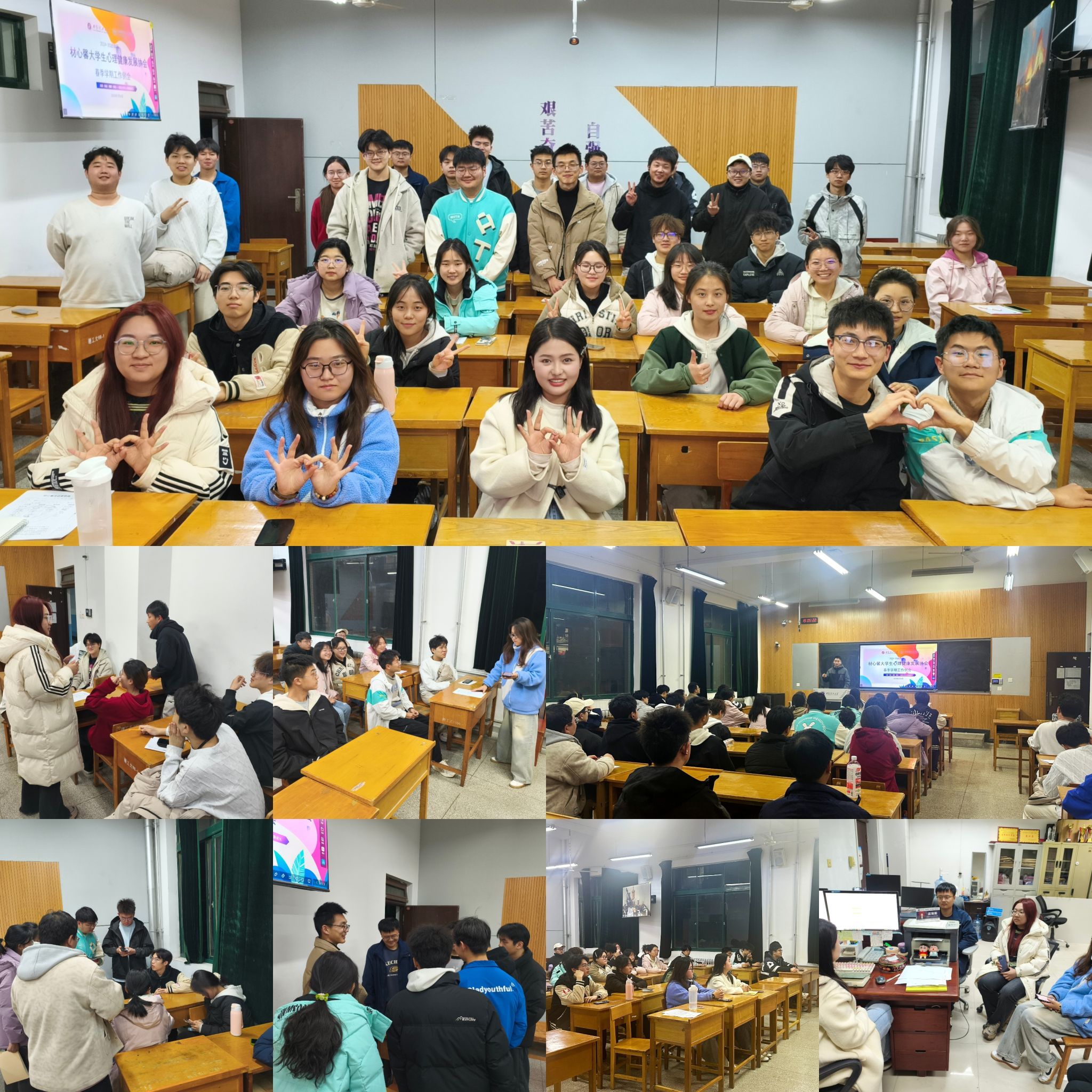 为做好大学生心理健康工作,扎实推进材料学院二级心理辅导站育人实效。3月6日晚,我院材心馨驿站志愿者见面会暨材心馨协会春季学期工作例会在曲江校区召开。本次会议由材心馨大学生心理健康发展协会会长蒙拓主持,指导教师赵琳娜、协会各部门负责人及全体志愿者参加了会议。