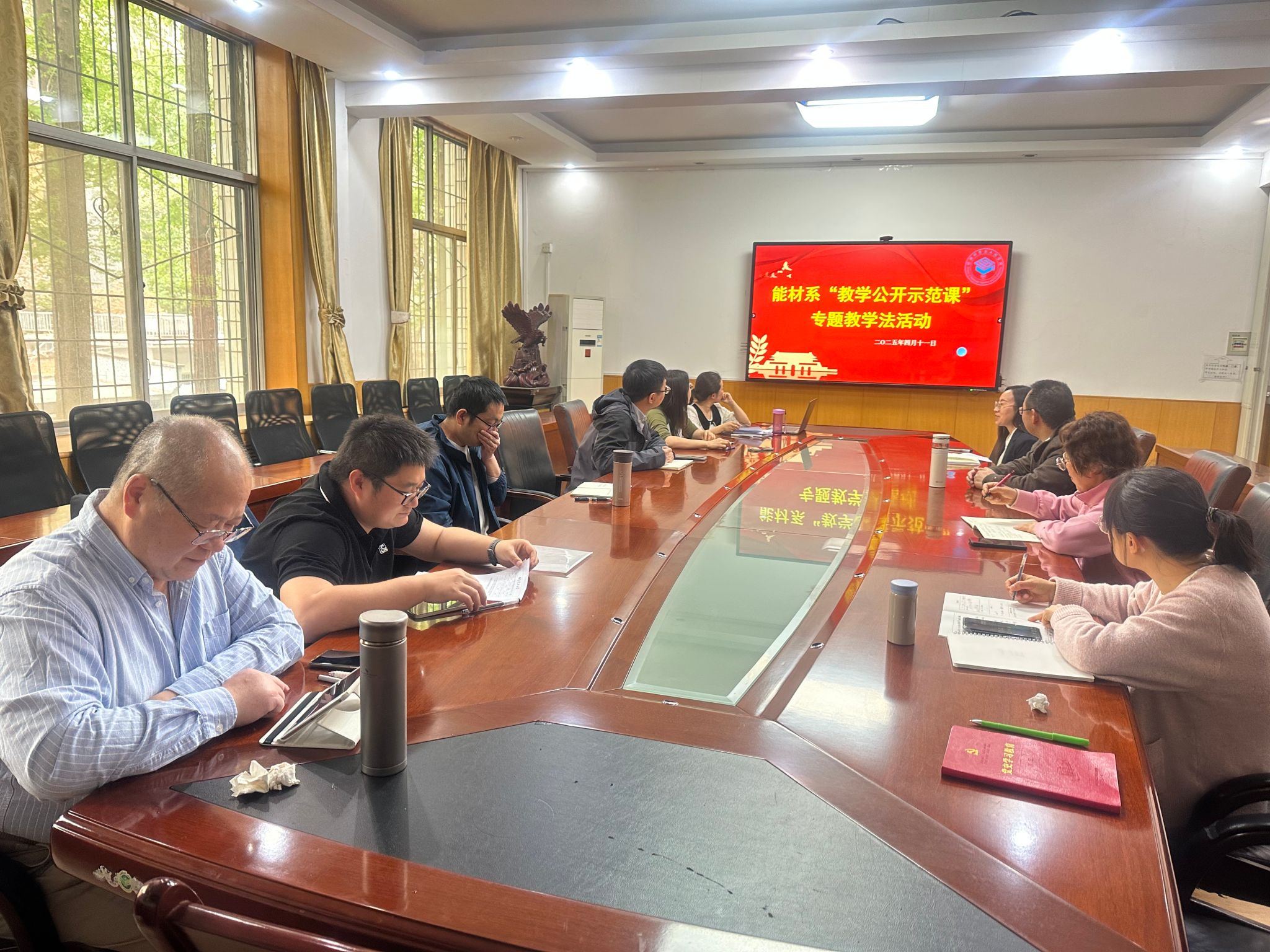 在教学示范展示环节,张改妮老师以《实验设计与数据处理》为例,系统阐释了OBE理念下的课程体系建构路径;杨慧娟副教授(校级青年教师讲课比赛获奖者)则现场呈现了"金属阳极"的教学比赛示范课。随后,沈洋副教授立足教学竞赛评审标准,系统讲解了教学比赛创新的突破点,即教学内容有效设计、教学方法的多元化融合以及信息技术的适切性应用,并且特别强调了课程思政元素的有机融入策略。葛利玲正高级工程师结合多年教学和督导经验,从“教学设计的逻辑性、知识呈现的精准性、课堂互动的有效性”三个维度进行了专业剖析。会后大家感慨,专家的指导犹如拨云见日,让大家对教学创新和以赛促教的内涵有了更深层的理解。系主任李文斌副教授表示,此次活动将为新能源材料与器件系教学能力提升注入新动能,后续将建立"系教学竞赛培育机制",持续提升教师的比赛积极性和能材系整体教学水平。