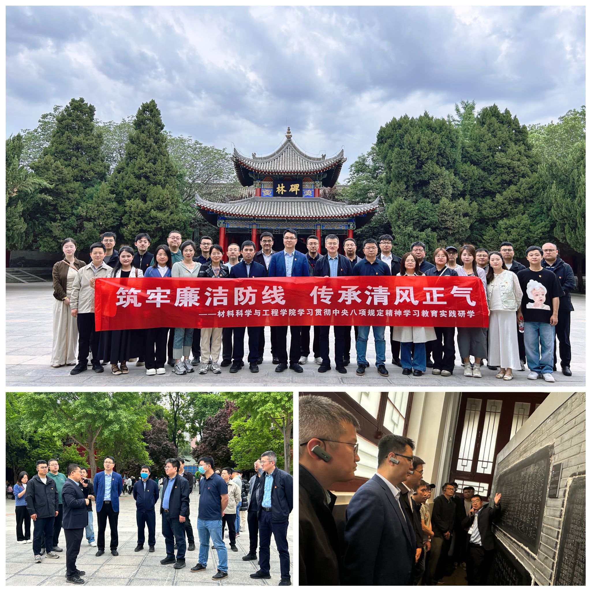 为深入贯彻中央八项规定精神学习教育,推进党纪学习教育常态化长效化,4月27日上午,材料科学与工程学院党委组织领导班子成员、党委委员、纪委委员、党支部书记、系主任和行政党支部赴西安碑林廉政教育基地(西安碑林博物馆)开展“筑牢廉洁防线传承清风正气”主题实践研学活动。