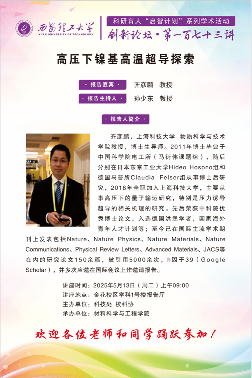 【淬砺成材】上海科技大学齐彦鹏教授学术报告通知