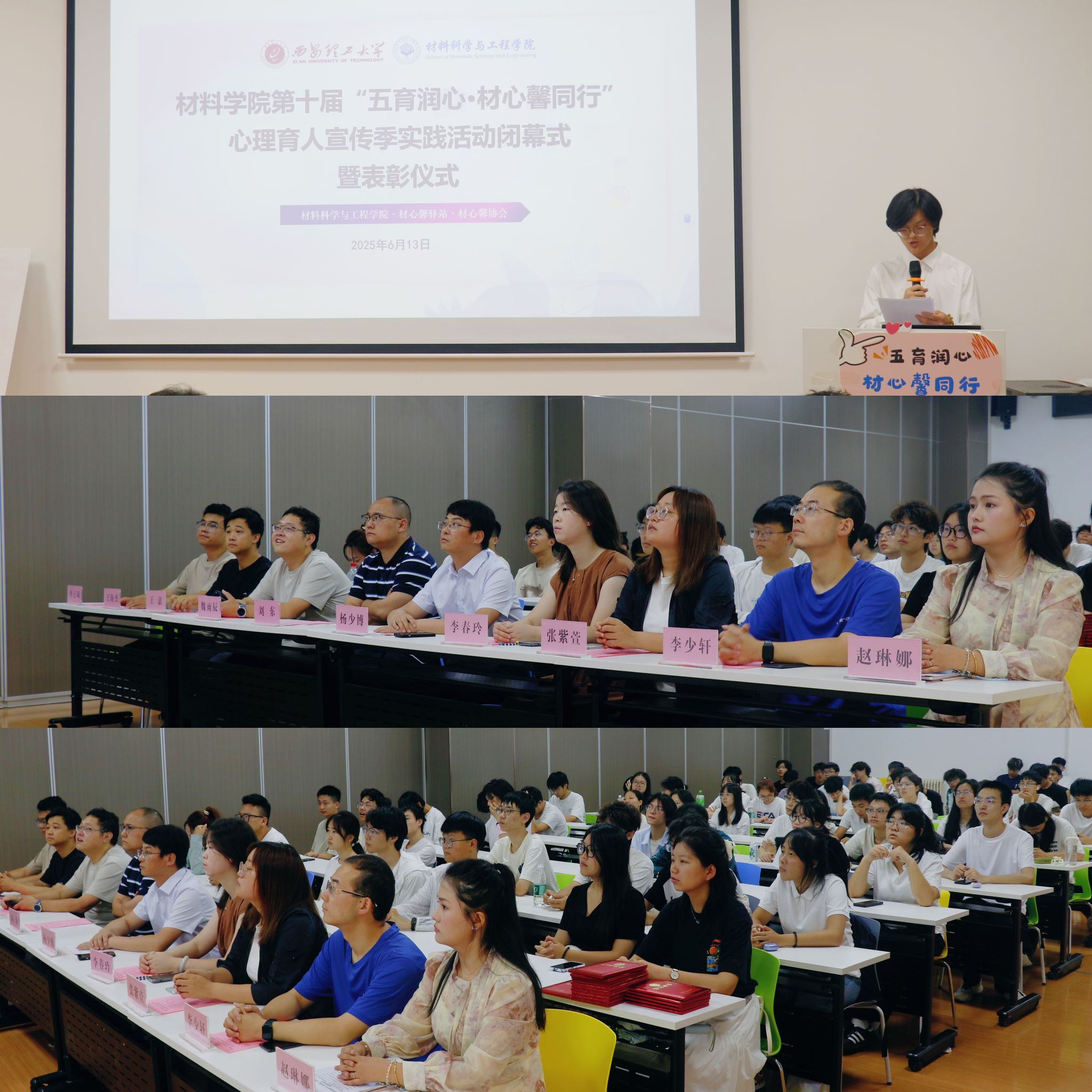 会上,学院心理专干赵琳娜系统总结了本届宣传季的实践经验。围绕“五育润心”主题,学院通过德育铸魂、智育赋能、体育强心、美育润心、劳育砺心的多元活动,打造了“材子跑团”“心馨微影”“学霸心攻略”等品牌项目,将心理健康教育融入学生成长全周期,构建了“班级-协会-志愿团”三级心理支持体系。活动覆盖学业支持、艺术疗愈、朋辈互助等多维度,显著提升了学生心理韧性与自我认知能力。