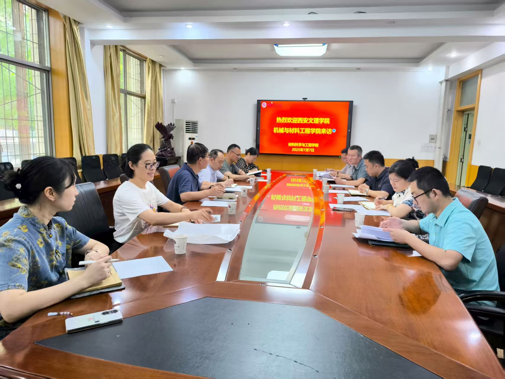 7月17日,西安文理学院机械与材料工程学院院长张运良、副院长杨森林,系主任畅庚榕等一行6人来访材料科学与工程学院,就专业建设、实验室建设与实践教学、校企合作等工作与我院展开深入交流。材料学院副院长李福平、孙少东以及各系(实验中心)主任参加交流座谈。会议由李福平副院长主持。