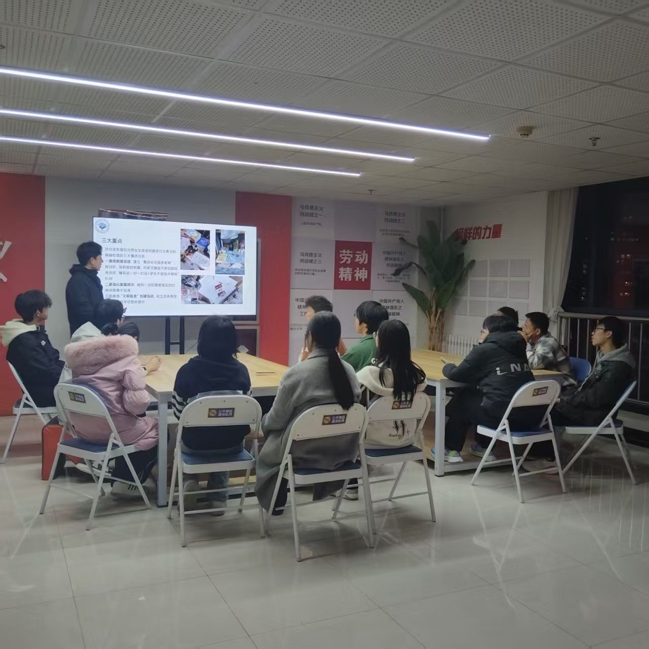 培训中,生活部负责人李佳伟就检查宿舍的具体流程进行讲解,明确人员分组、巡查时间和结果填报等细节要求,并现场演示小程序操作,解答同学们的疑问。
