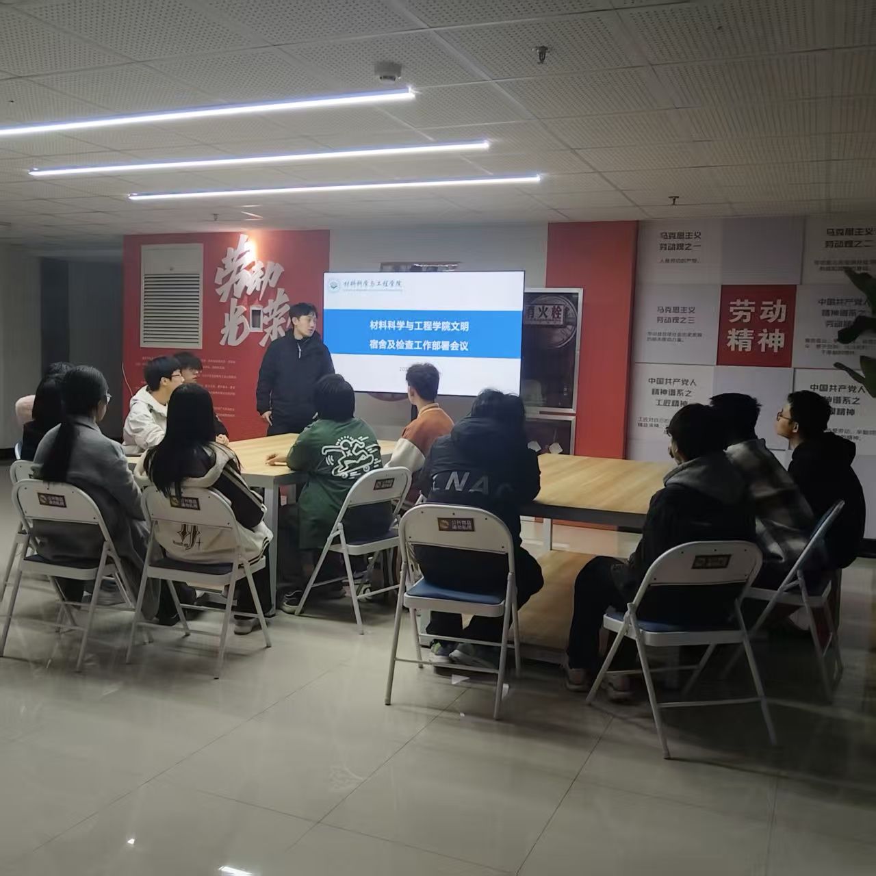 为深化文明校园建设,筑牢宿舍安全防线,提升学生自我管理与集体协作能力,以宿舍文化涵养育人氛围,10月22日晚19:00,材料科学与工程学院在学生一站式社区开展2025年秋季学期文明宿舍创建启动仪式暨安全卫生检查小组培训会。学院文明宿舍专干李子琦、生活部全体人员、安全卫生检查小组成员参会,为新学年宿舍管理工作拉开序幕。