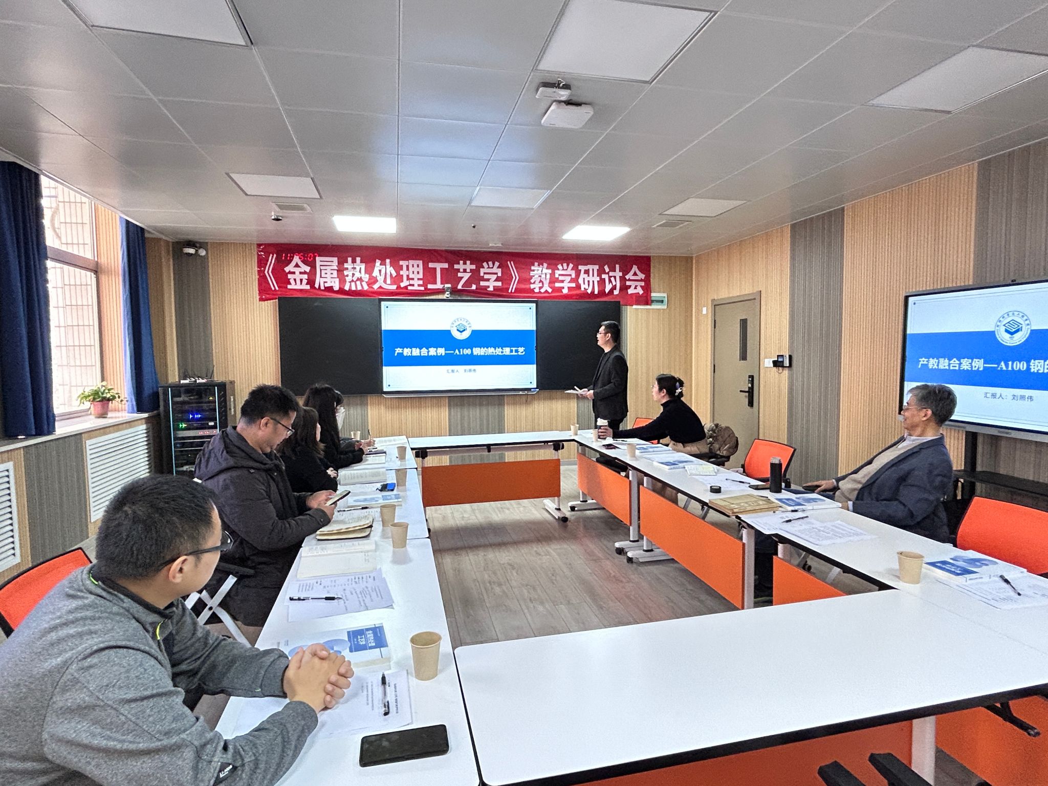 在主题分享环节,西安理工大学赵康教授首先就《金属热处理工艺学》的课程建设与教材编写情况进行了详细介绍。他结合新工科建设背景,深入剖析了教材内容的编写特色及课程体系的优化路径。随后,于晓婧副教授通过精美的PPT演示并结合自身近期参加陕西省教学创新大赛的宝贵经历,生动分享了如何在课程教学中融入创新理念、提升课堂吸引力与教学效果的实战心得。刘照伟副教授以“产教融合案例——A100钢的热处理工艺”为主题,将具体工程问题引入课堂,让学生在实战中掌握工艺精髓,为在场教师提供了极具参考价值的产教融合新范式。