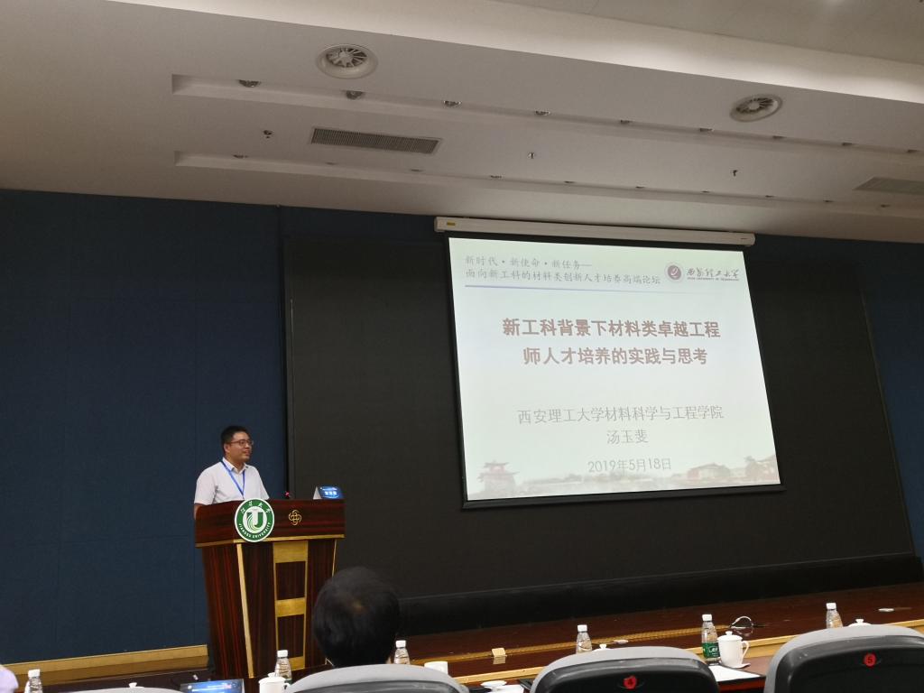 5月17日至19日,由教育部高等学校材料类专业教学指导委员会主办,教育部高等教育司指导,江苏大学承办的2019年“新时代·新使命·新任务——面向新工科的材料类创新人才培养高端论坛”在江苏镇江召开。高等学校材料类专业教学指导委员会委员、我校校长助理、研究生院院长赵康教授、教务处处长梁淑华教授、材料学院副院长汤玉斐教授、材料学院青年教授贾磊副教授应邀参加了论坛。