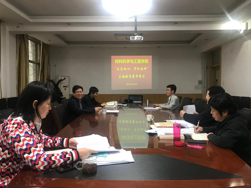 9月17日下午,材料科学与工程学院党委在学院会议室开展“不忘初心、牢记使命”主题教育读书班第一次集中学习,学院副处级以上领导干部参加了集中学习。