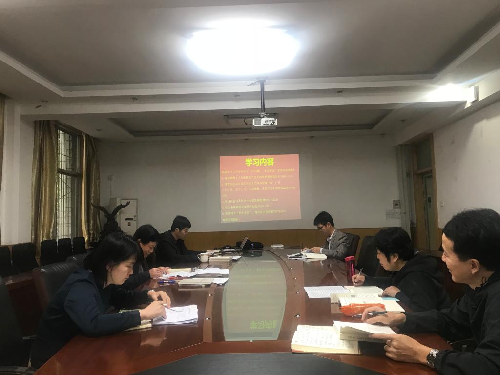 大家按照集中学习计划,在自学的基础上,原文领读学习《习近平关于“不忘初心、牢记使命”重要论述选编》中的“辩证唯物主义是中国共产党人的世界观和方法论”“理想信念是中国共产党人的政治灵魂”“党必须勇于自我革命”“新时代要有新气象,更要有新作为”等章节,认真学习了学校第八次党代会精神。