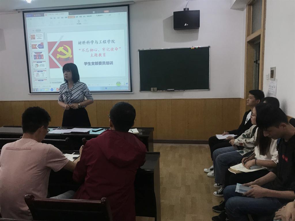 为进一步加强我院学生党支部建设,推进学生党支部工作的规范化、科学化建设,扎实开展“不忘初心、牢记使命”主题教育,9月24日,材料学院举行学生党支部委员培训,材料学院党委副书记、副院长郝敏敏,学院学生党建工作负责人刘艾京,全体学生党支部委员参加了培训会。