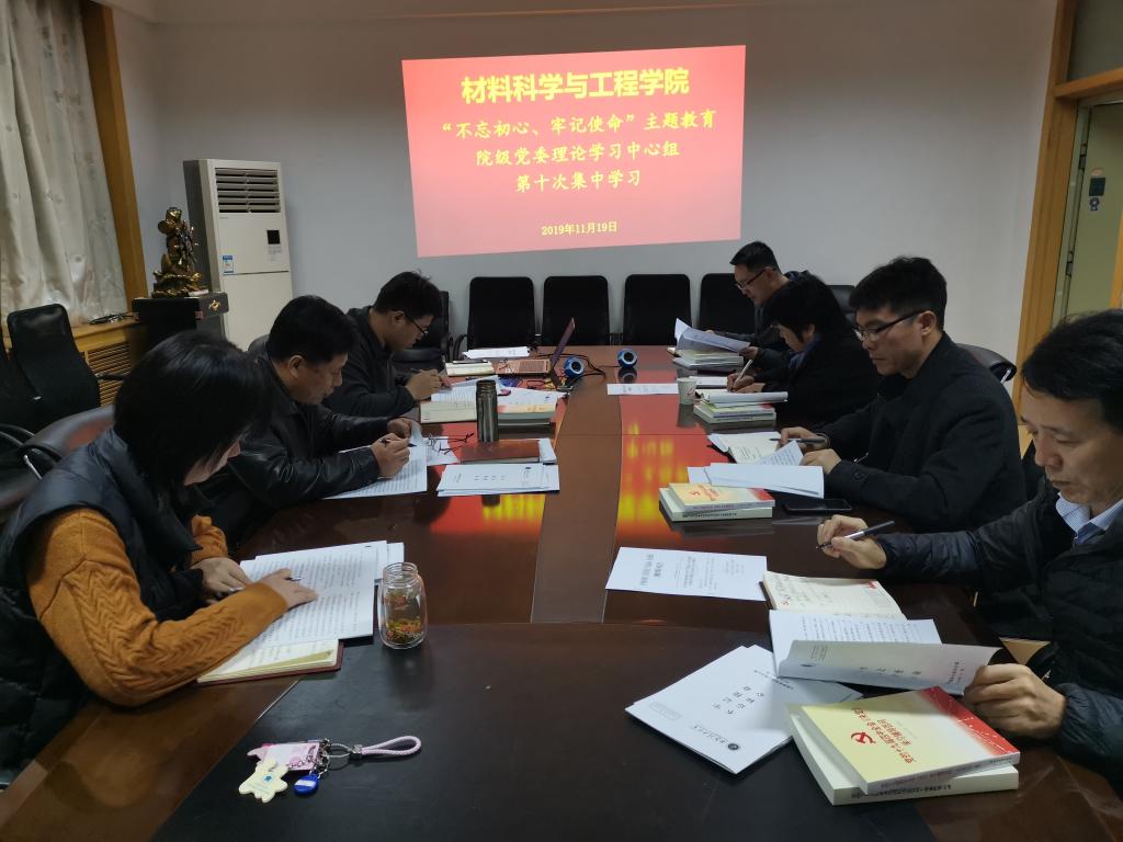 11月19日,材料学院在学院学科办公室开展“不忘初心、牢记使命”主题教育第十次集中学习,学院处级领导干部和院班子成员参加。