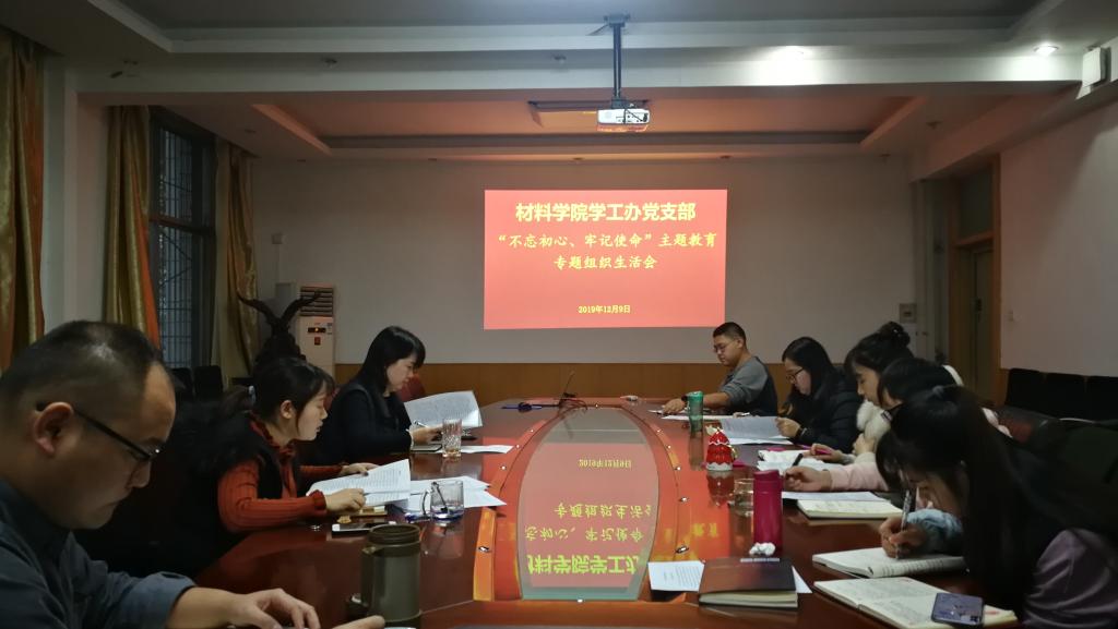 12月9日,材料学院学工办党支部在学院会议室召开“不忘初心、牢记使命”主题教育专题组织生活会。学院党委副书记兼副院长郝敏敏参加并指导,支部书记刘艾京主持会议。