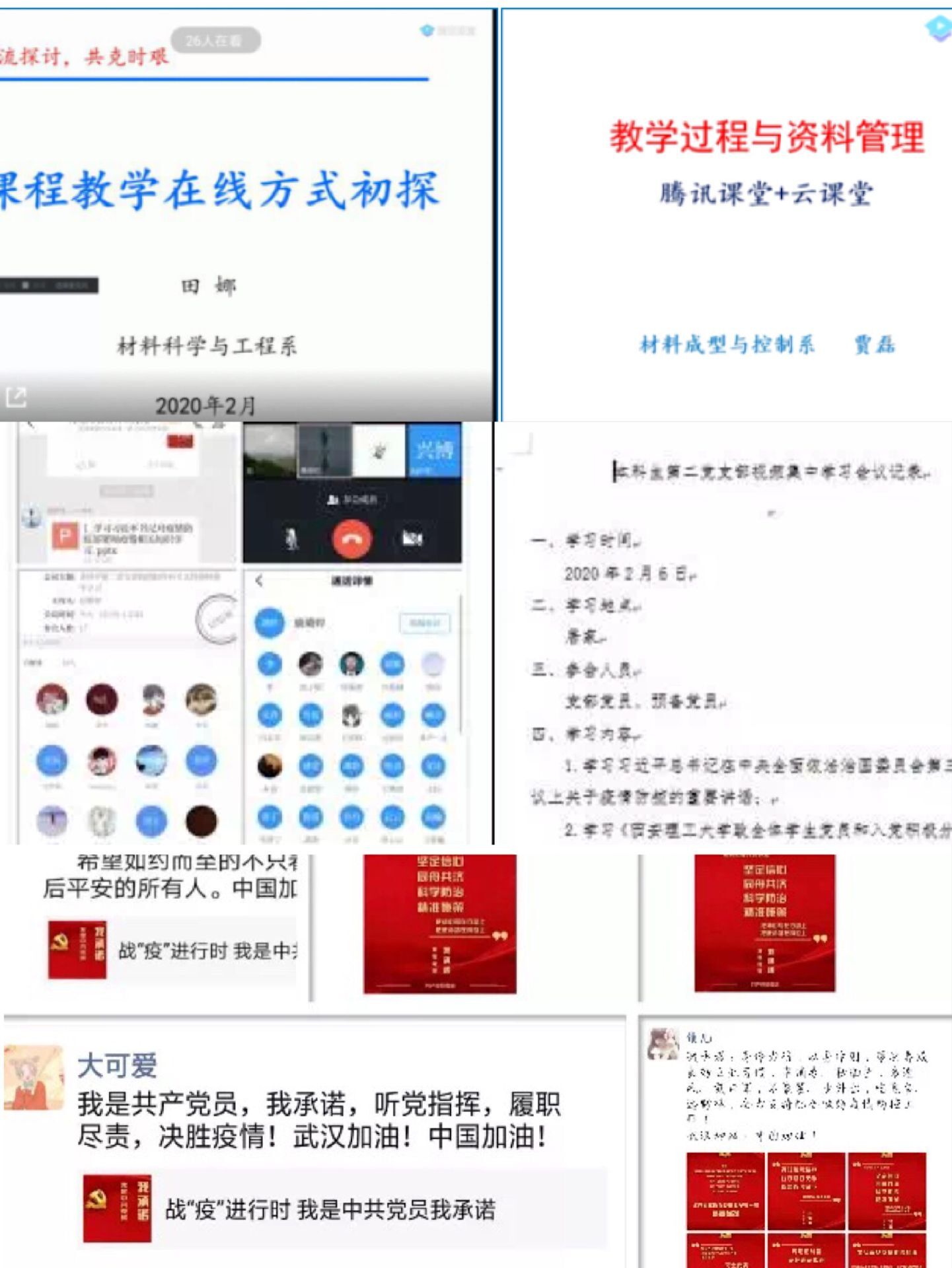 一个党员就是一面旗帜,一个党支部就是一座战斗堡垒。新冠肺炎疫情暴发后,师生党员积极行动,进行线上学习,开展多种形式的线上活动,积极响应学校“停课不停学、停课不停教”的具体要求,踊跃捐款,以实际行动支援疫情防控工作,充分展现了材料人的责任与担当。