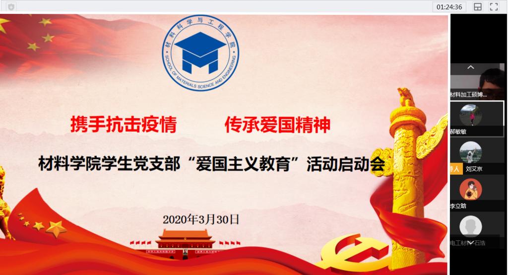 3月30日下午,材料学院线上召开学生党支部“携手抗击疫情,传承爱国精神”主题教育活动启动会,学院党委副书记、副院长郝敏敏,各学生党支部书记参加启动会,会议由学生党建负责人刘艾京主持。