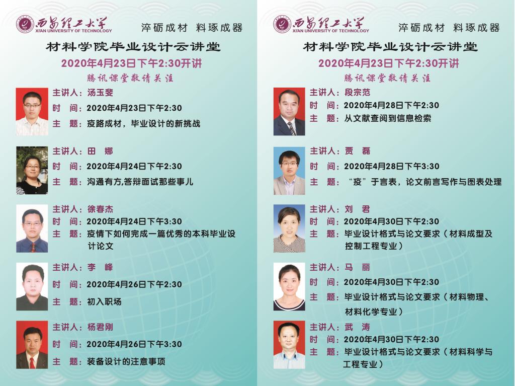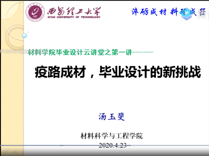 本次线上指导讲座加强了师生之间的沟通,推进了本科毕业设计(论文)工作的开展,展现了疫情面前材料教师与学子严谨的学术态度和良好的精神风貌。疫情当前,教学管理不放松,学院将继续加强本科毕业设计质量监督管理,确保毕业设计保质保量的完成,为学生顺利毕业打下坚实基础。