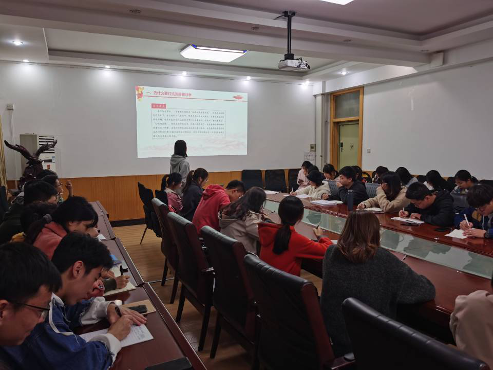 支部燕琪同志围绕主题,从“为什么要出国作战”“为什么要纪念抗美援朝”“当代青年应该做什么”三个部分展开介绍,并呼吁同志们铭记历史,缅怀先烈,学习志愿军不畏强权、英勇斗争、不怕牺牲、以苦为乐的精神。随后,刘银星同志分享学习感悟,认为大学生要提高政治素质,居安思危,勤奋努力。最后,支部书记朱真对本次学习做总结,希望同学们铭记抗美援朝战争的艰辛历程和伟大胜利,坚定理想信念,做到爱国爱校,团结同学,刻苦学习。