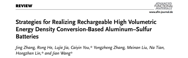 近日,西安理工大学材料学院游才印教授所负责的金属功能材料团队在《Advanced Functional Materials》(影响因子:19.0)发表了关于高体积能量密度铝硫电池的构筑、设计与展望的综述文章。论文题为“Strategies for Realizing Rechargeable High Volumetric Energy Density Conversion-Based Aluminum Sulfur Batteries”。《Advanced Functional Materials》是材料科学领域顶级期刊,主要刊载纳米技术、材料物理及化学和生物材料等方面的突破性研究和综述文章。西安理工大学为第一署名单位,材料学院青年教师张静博士为论文第一作者,游才印教授为第一通讯作者。该工作由西安理工大学游才印团队联合中科院苏州纳米所蔺洪振研究员与德国亥姆赫兹电化学研究所王健博士(现为洪堡学者)合作完成,受到了国家自然科学基金、陕西省国际科技合作重点项目、陕西省自然科学基础研究计划及陕西省青年创新团队等项目的支持。