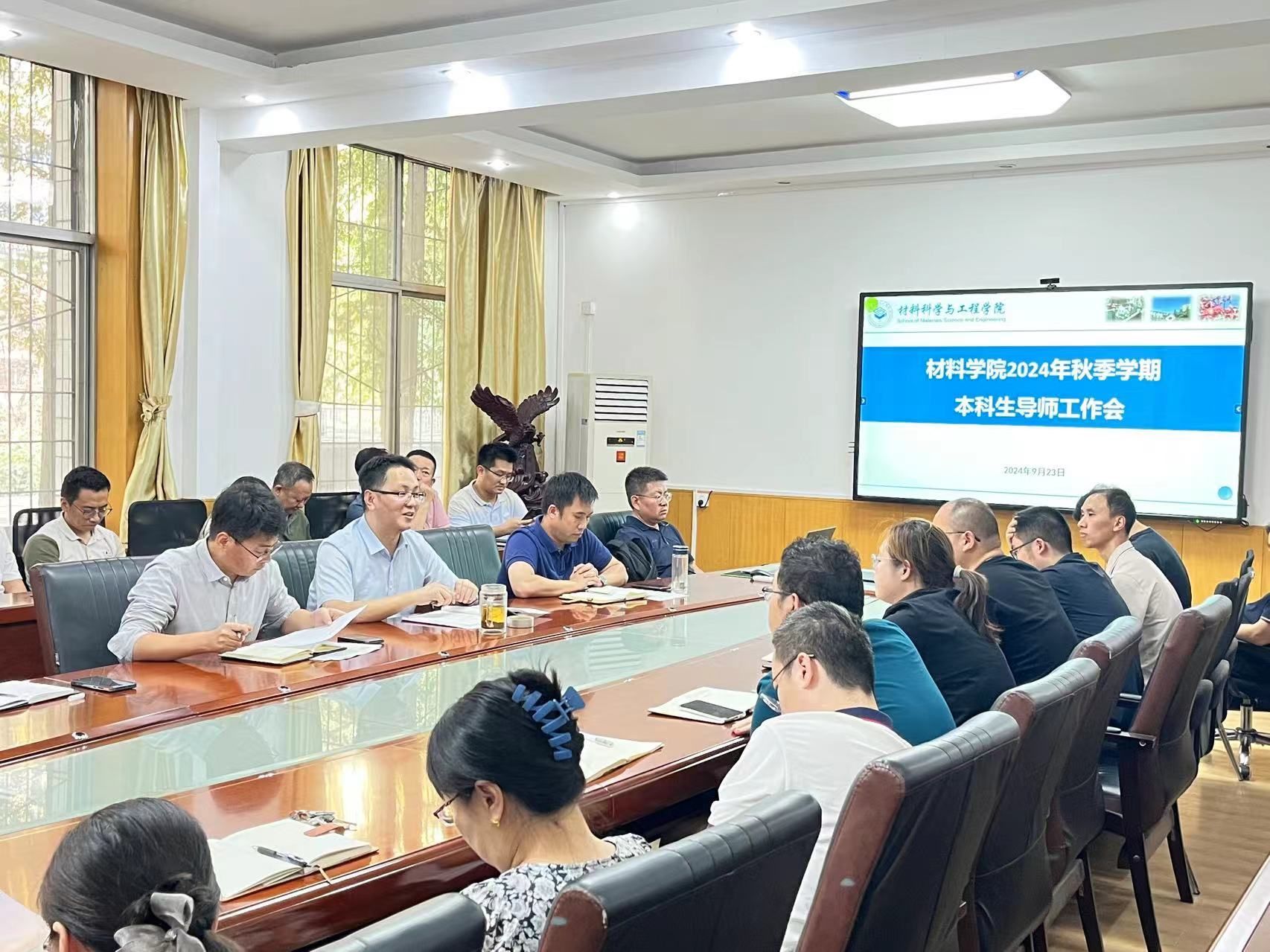 9月23日下午,材料学院在学院会议室召开2024年秋季学期本科生导师工作会,学院党委书记邹军涛、党委副书记兼副院长杨少博、副院长孙少东、全体本科生导师和辅导员参会。