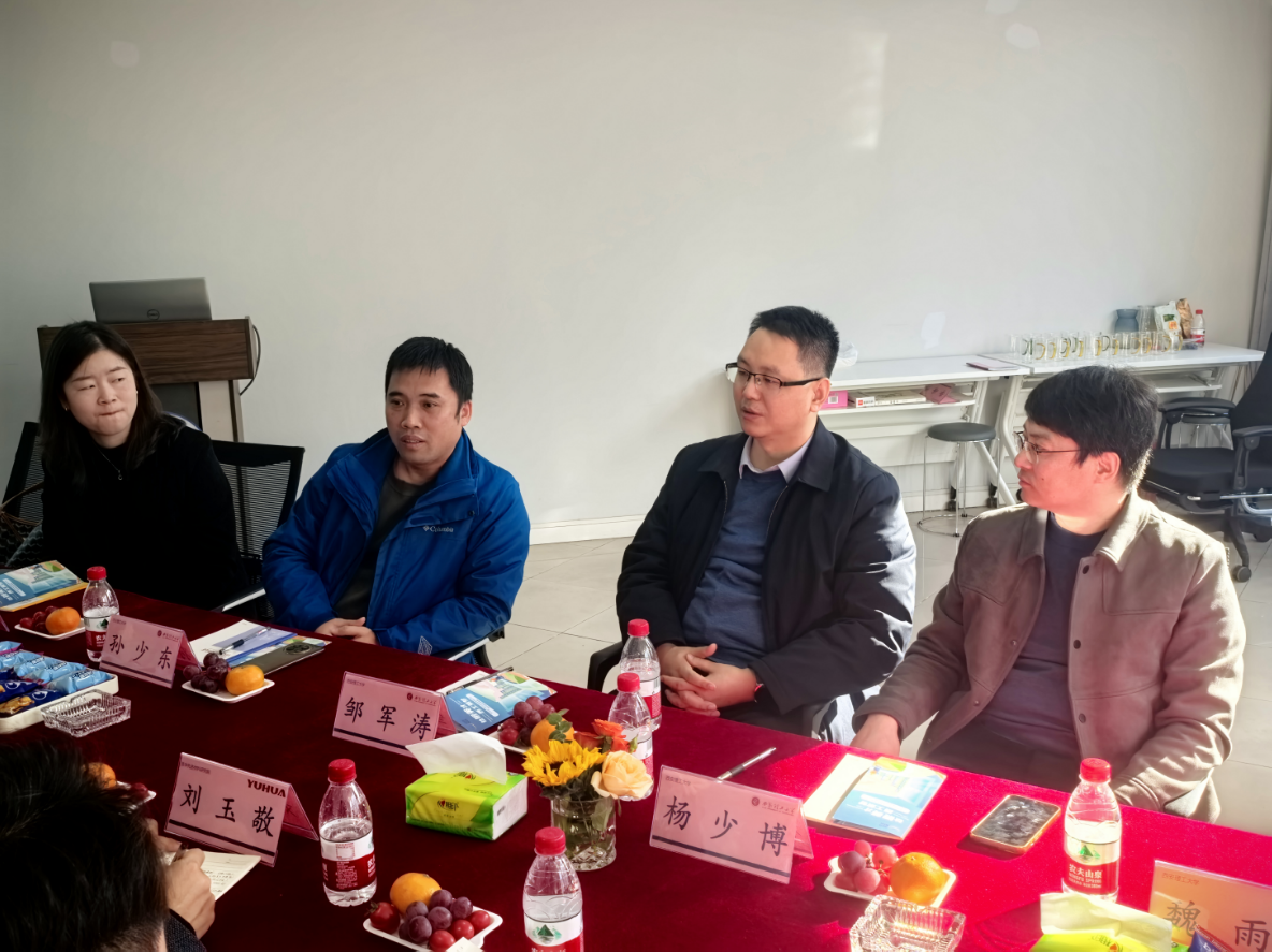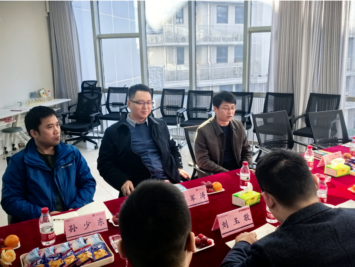 在会上,邹军涛致辞并介绍了学院的历史沿革和发展现状,表示很高兴能与昱华研究院在学术合作、学生培养、就业深造等领域展开相应合作。杨少博介绍了学院学生的培养就业相关情况,希望本次能与昱华研究院在人才招聘上达成更多共识。刘玉敬教授介绍了研究院的发展历程、基本情况、主要业务和优势亮点等。会上双方还就专业技术、人才培养、实践深造以及招聘计划等方面开展深入探讨及交流。会后,刘玉敬教授邀请大家参观昱华研究院材料表征实验室、制样实验室等。