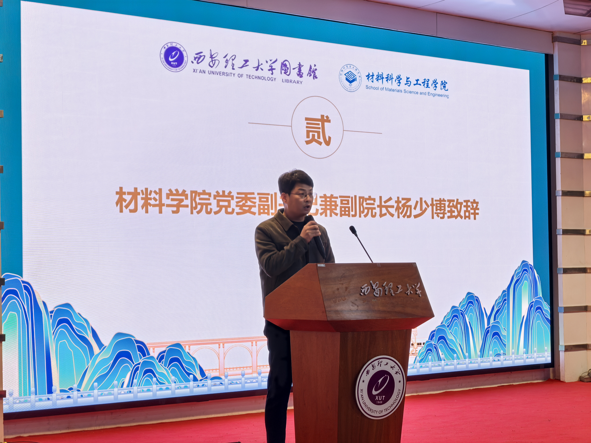 杨少博对此次活动进行介绍,并指出,大学是追逐梦想的起点,阅读则是学生们汲取知识、塑造自我、拓展思维的重要途径,从学科知识与个人素养两个层面探讨读书的重要性,表达对材料学子成长的殷切期望,同时对图书馆各位领导和同事的辛勤付出表示感谢。