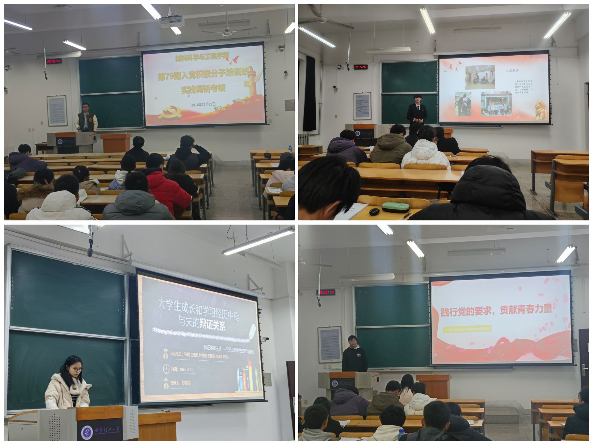 为深入学习贯彻习近平新时代中国特色社会主义思想和党的二十届三中全会精神,进一步引导入党积极分子增强政治觉悟、坚定理想信念,锤炼道德品质,提升综合素质,切实将思想教育与实践锻炼相结合,材料学院于12月12日举办了第79期入党积极分子调研实践考核答辩会。院党校负责人王海杰、本科生辅导员赵琳娜、李子琦和各小组代表参与考核答辩。