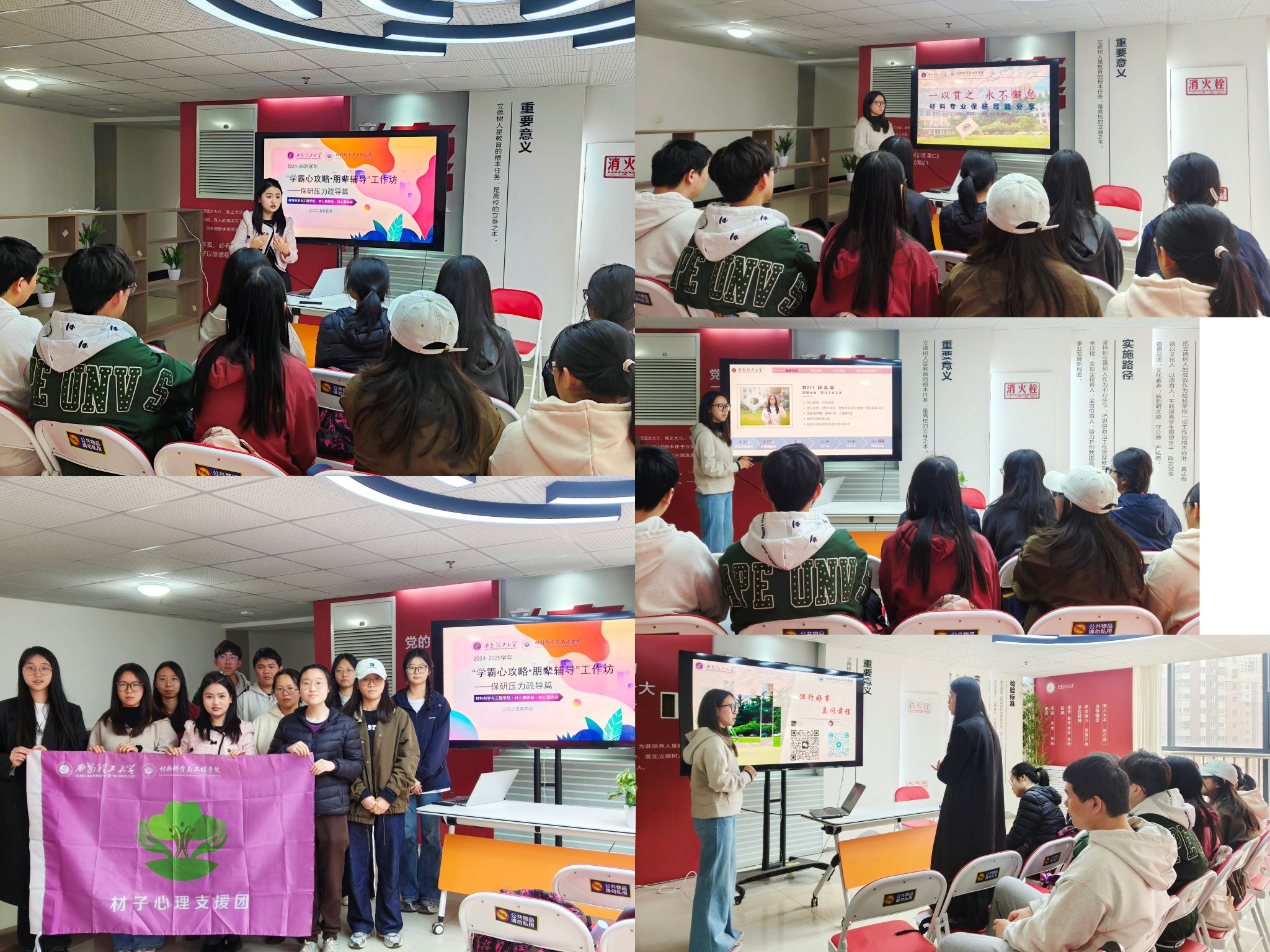 为缓解学生学业压力,提升自我调节能力。2025年4月2日,材料学院在曲江校区一站式学生社区开展“学霸心攻略·朋辈辅导”工作坊,本次活动聚焦保研压力疏导篇,邀请到材211班学生段嘉宜担任主讲,活动由材料学院心理专干赵琳娜主持。