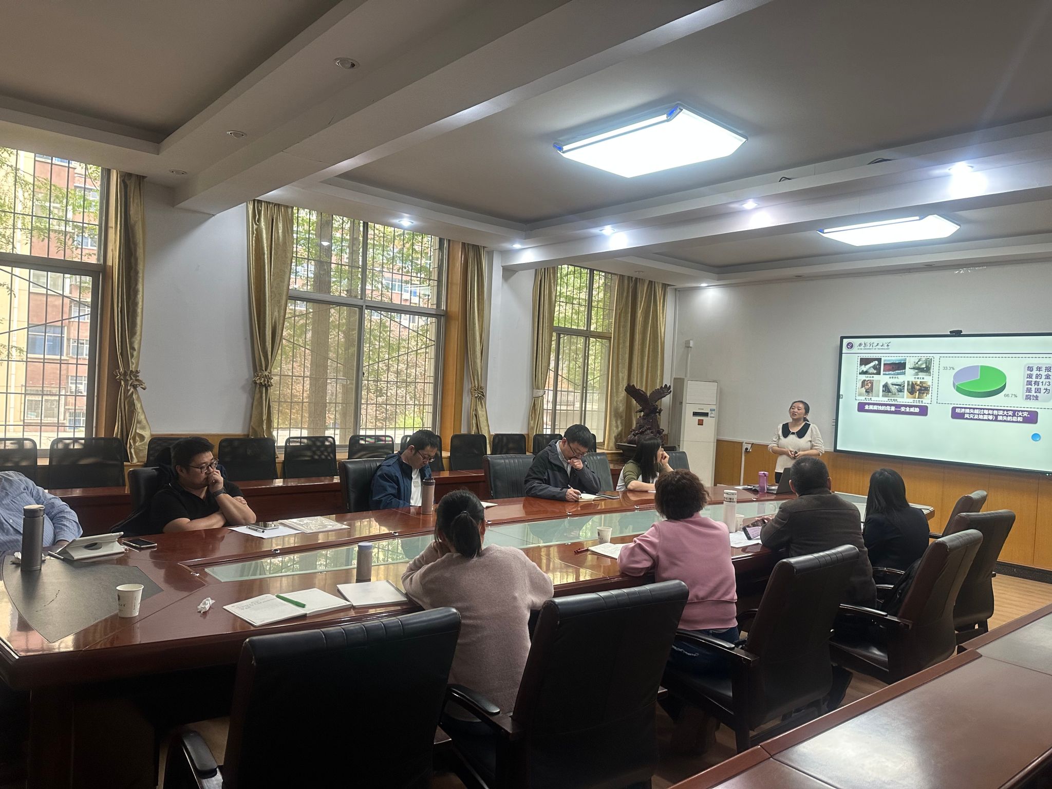 在教学示范展示环节,张改妮老师以《实验设计与数据处理》为例,系统阐释了OBE理念下的课程体系建构路径;杨慧娟副教授(校级青年教师讲课比赛获奖者)则现场呈现了"金属阳极"的教学比赛示范课。随后,沈洋副教授立足教学竞赛评审标准,系统讲解了教学比赛创新的突破点,即教学内容有效设计、教学方法的多元化融合以及信息技术的适切性应用,并且特别强调了课程思政元素的有机融入策略。葛利玲正高级工程师结合多年教学和督导经验,从“教学设计的逻辑性、知识呈现的精准性、课堂互动的有效性”三个维度进行了专业剖析。会后大家感慨,专家的指导犹如拨云见日,让大家对教学创新和以赛促教的内涵有了更深层的理解。系主任李文斌副教授表示,此次活动将为新能源材料与器件系教学能力提升注入新动能,后续将建立"系教学竞赛培育机制",持续提升教师的比赛积极性和能材系整体教学水平。