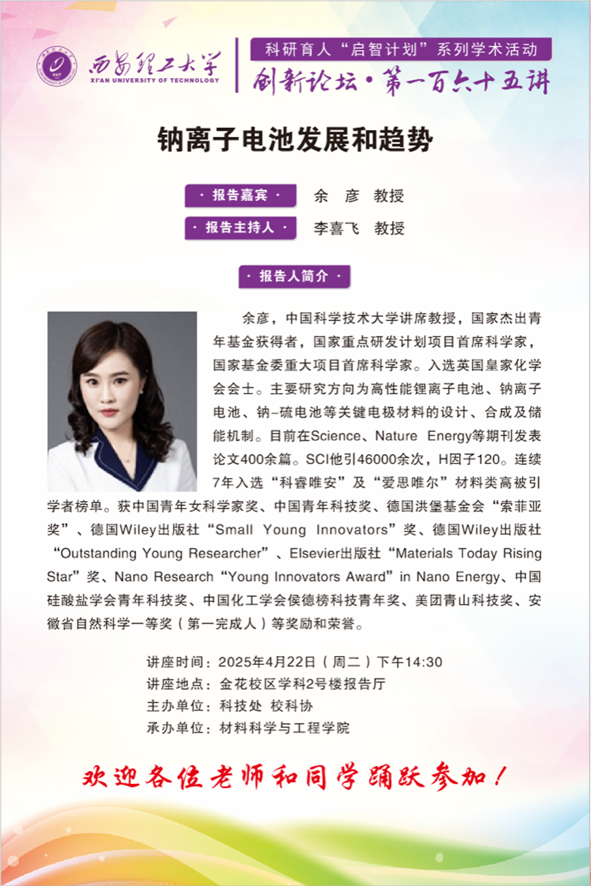 【淬砺成材】中国科学技术大学余彦教授学术报告通知