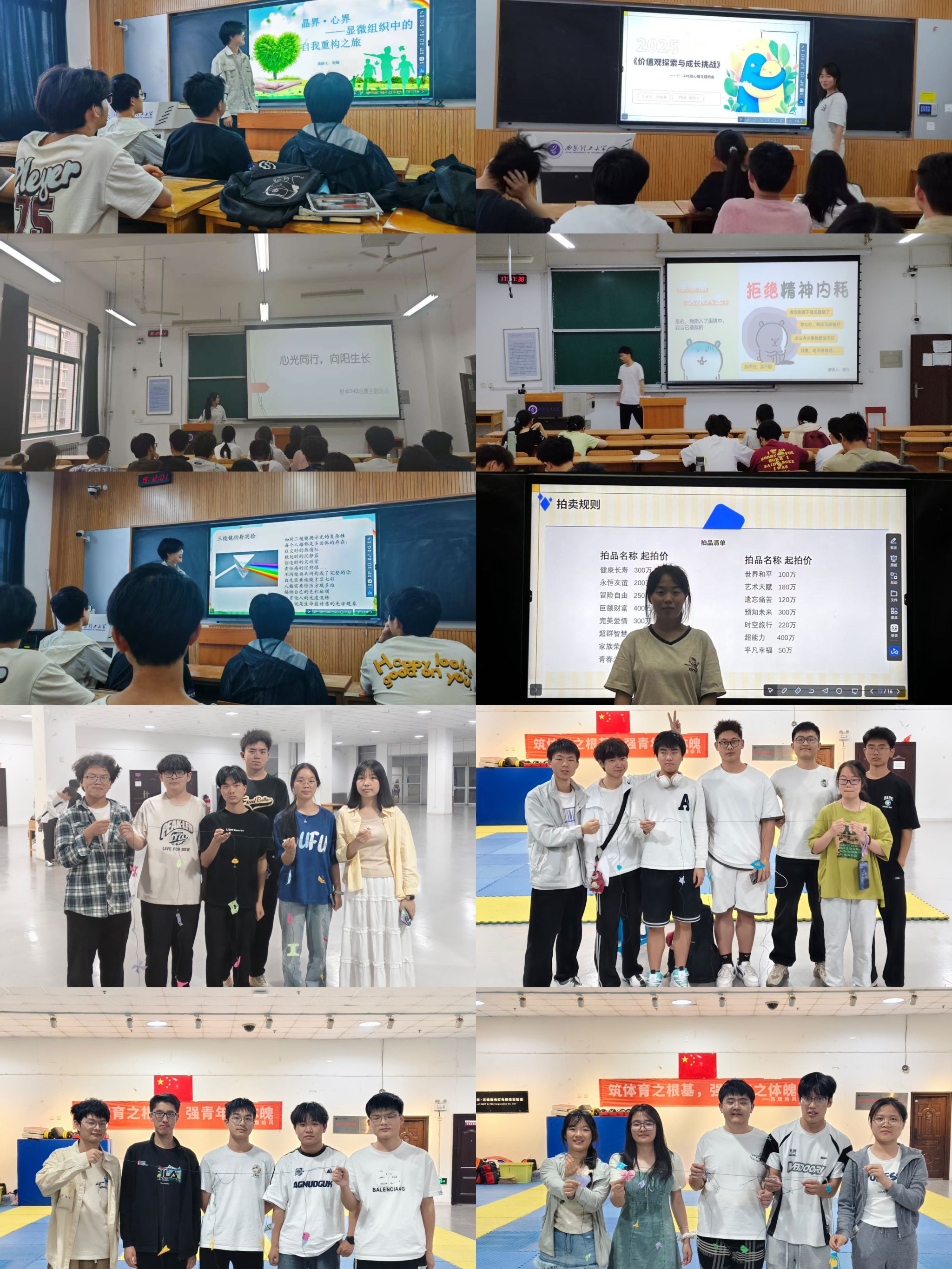 本次班会以德育、智育、体育、美育、劳育为框架,构建全方位心理支持体系。德育铸魂:结合红色教育实践,如“学习党的二十大”主题活动,引导学生厚植家国情怀,树立积极人生观。智育启思:策划“材料科学中的心理韧性”班会活动,通过实验案例解析挫折应对策略,如“材料人生——在生长曲线中遇见真实的自己”项目,培养学生抗压能力与创新思维。体育强心:组织班级同学参加户外活动,如材子跑团·21天悦动打卡,以团队协作和体能挑战锤炼意志品质。美育润心:开展“心理幕帘创作”,利用艺术创作、彩绘表达等内容疗愈情绪,提升审美素养。劳育砺心:结合实验室管理、社区心理知识科普服务、社会心理赋能等实践,强化责任感与劳动精神。