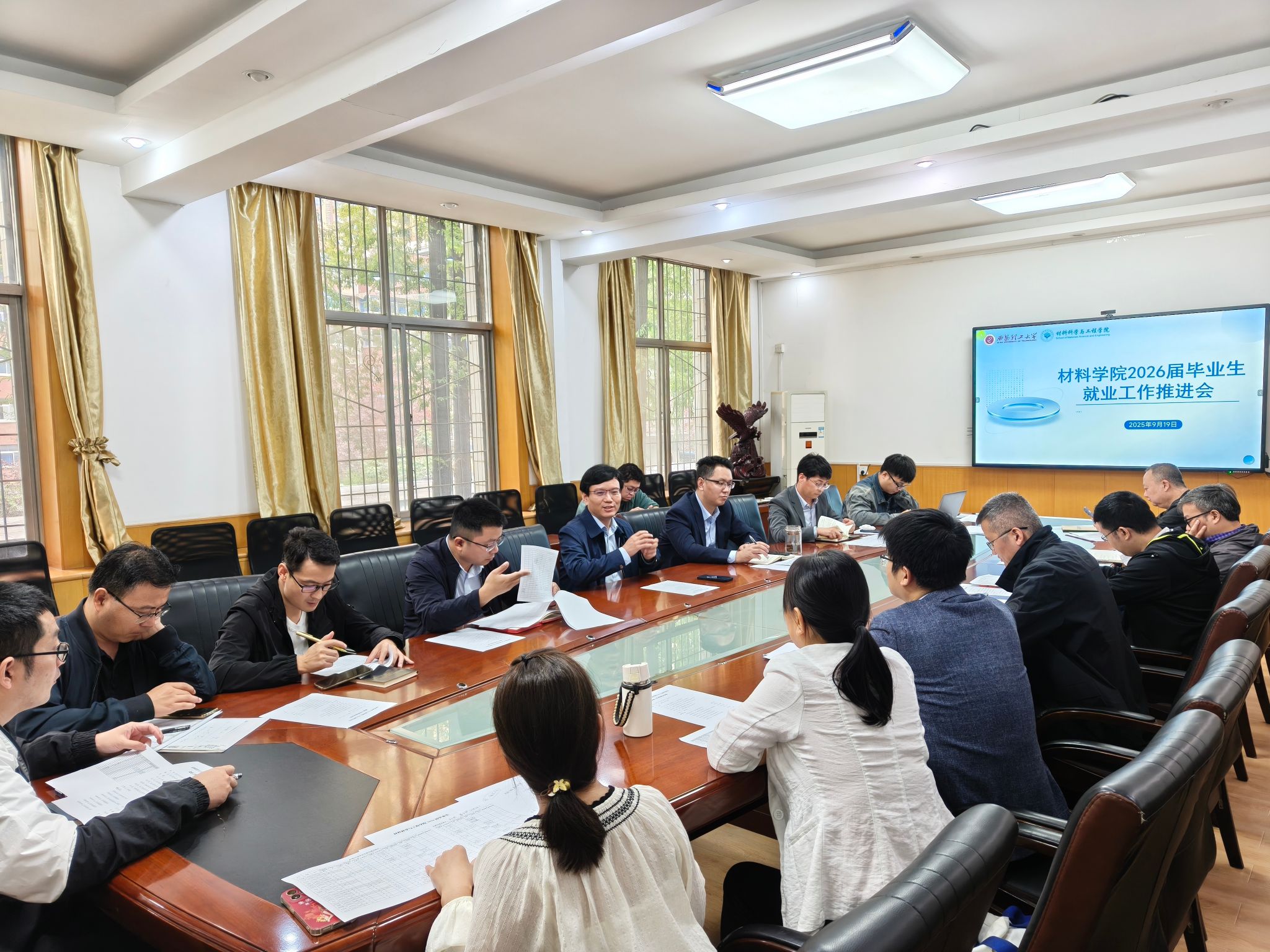 为抢抓秋季学期就业黄金期,进一步推动2026届毕业生就业工作,材料学院于9月19日上午在教二楼会议室召开就业工作推进会议。学院党政领导班子成员、各系主任、2026届毕业生班级导师及辅导员参加本次会议。