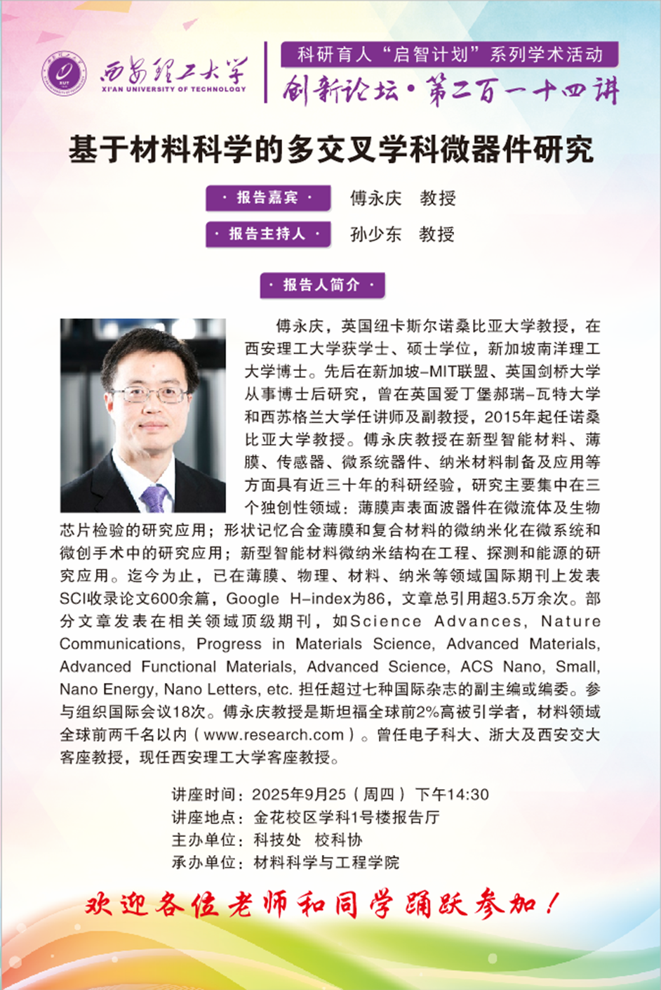 【淬砺成材】英国纽卡斯尔诺桑比亚大学傅永庆教授学术报告