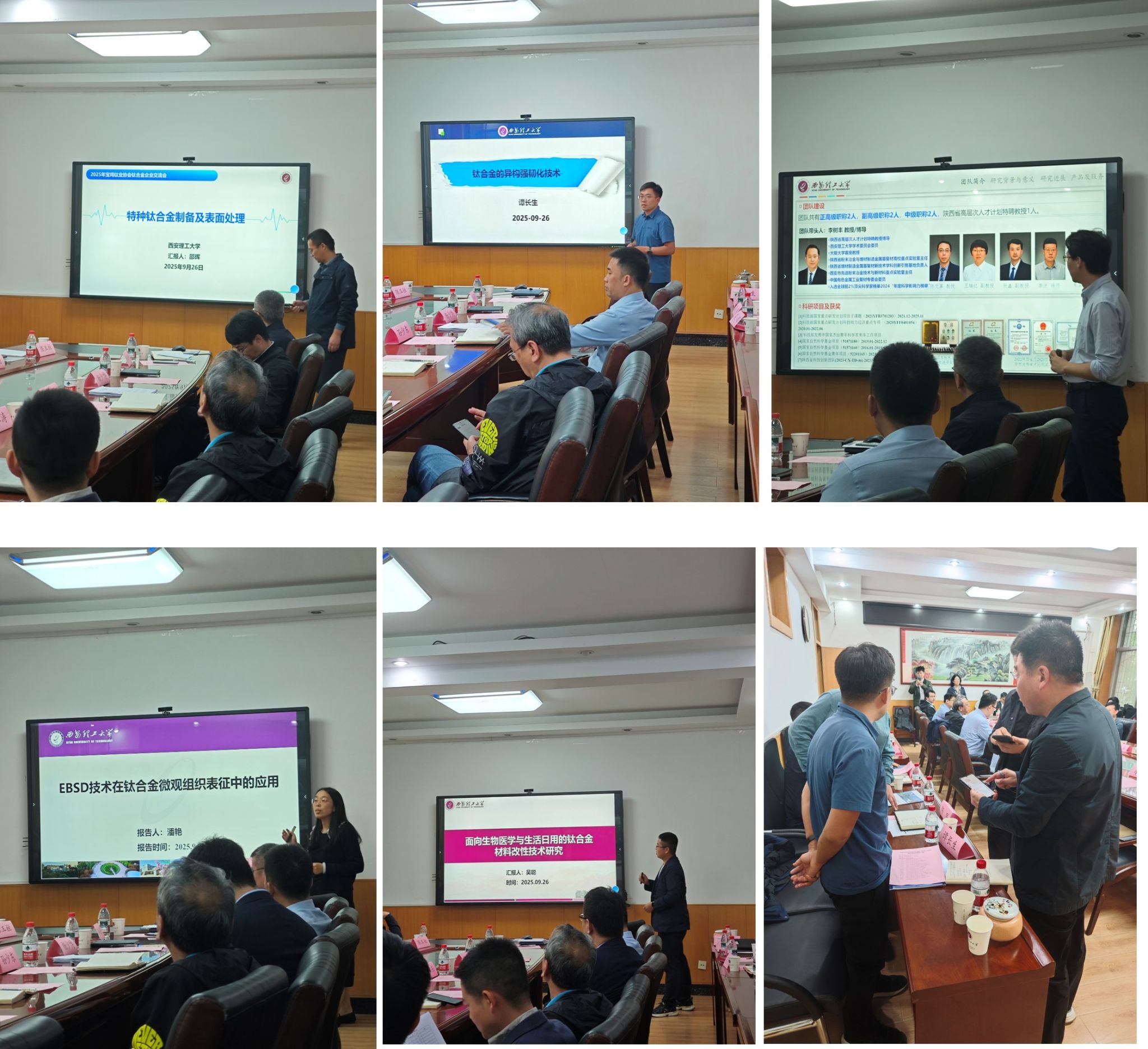 2025年9月26日下午,宝鸡市科技企业协会钛产业专业委员会成员:陕西四维衡器科技有限公司董事长、宝鸡市科技企业协会理事长王建军,宝鸡市广环机床有限责任公司董事长、宝鸡市科技企业协会党支部书记兼副秘书长宋广维,宝鸡钛戈金属科技股份有限公司董事长、宝鸡市科技企业协会钛产业专委会秘书长王龙刚,宝鸡市科技企业协会顾问洪瑛,宝鸡市科技企业协会副秘书长李红梅,宝鸡市六维特种材料设备制造有限公司董事长、宝鸡市科技企业协会副理事长、钛产业专委会主任寇明虎等一行18人,来访材料科学与工程学院,双方就“产学研合作”召开研讨会。本次研讨会以“产学研协同赋能钛产业高质量发展”为主题,旨在搭建企业需求与材料学院科研的对接桥梁,破解企业在钛材料研发、工艺升级、人才培养等领域的痛点问题,为“中国钛谷”宝鸡的产业升级注入新动能。材料科学与工程学院党委书记邹军涛,材料科学与工程学院党委副书记杨少博,材料科学与工程学院副院长孙少东、杨卿、李福平,院长助理贾磊,以及学院从事钛合金材料、热处理工艺、表面工程研究的6位老师(陈文革、邵晖、谭长生、潘艳、吴聪、张鑫)共同参加交流座谈。会议由孙少东副院长主持。