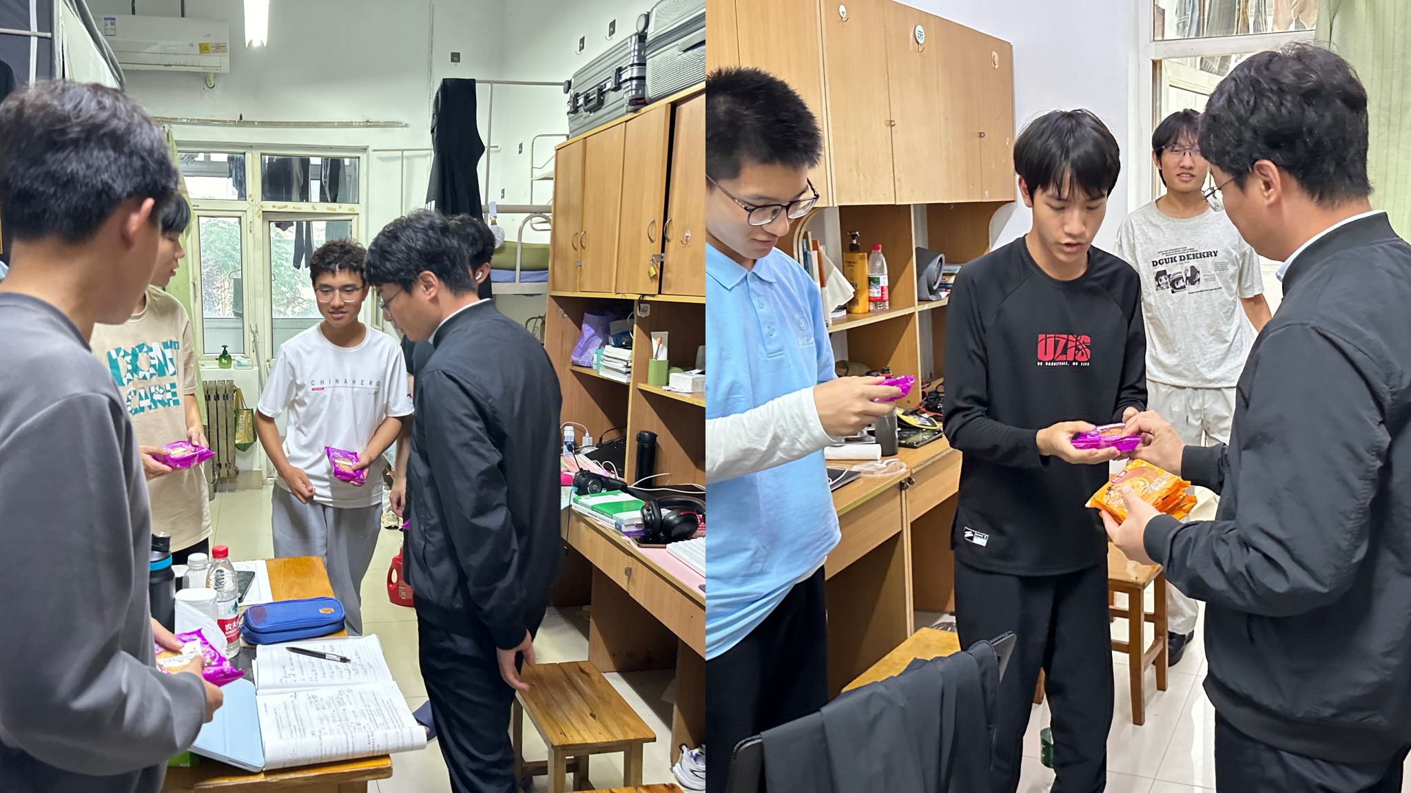 【淬砺成材】情满中秋,月饼送福——材料学院领导走访宿舍与新生共度中秋