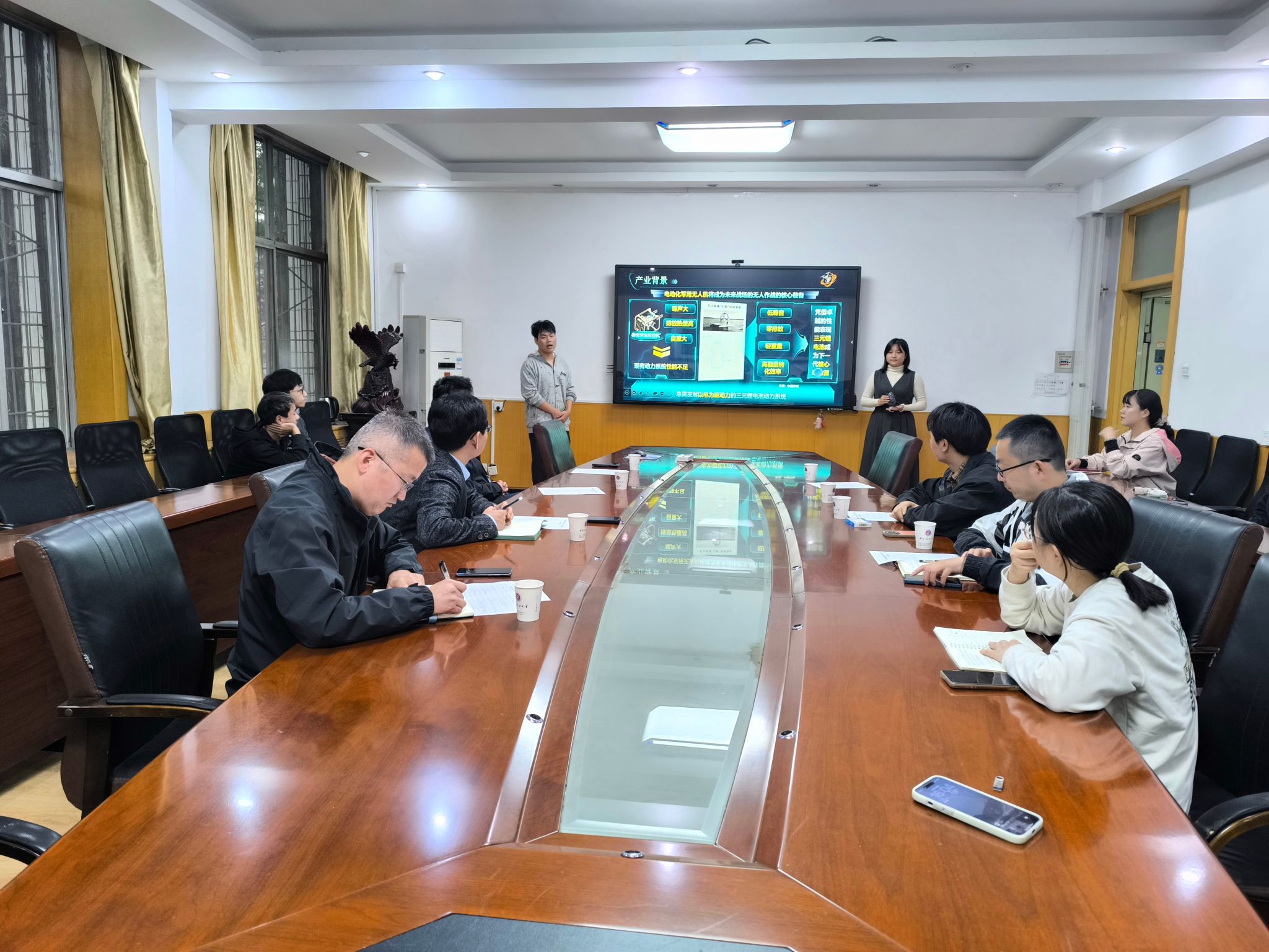 2025年,材料学院共有两个项目入围国赛现场答辩,分别为主赛道项目“层覆锂翼——ALD技术重塑无人机动力电池革新者”和产业赛道项目“极能航芯-三元/硅碳双高型电芯体系赋能无人机驰骋无界”。座谈会上,两个项目团队进行了路演展示,参会领导围绕项目ppt展示、路演表达技巧进行了细致点评。会议最后,李喜飞院长和邹军涛书记分别讲话。李喜飞院长表示学院将全力支持参赛团队备赛工作,保障参赛师生需求,他要求参赛团队要熟悉决赛基本规范要求,比赛过程中通力合作,相互关照,严守赛场纪律,尊重评委和对手,虚心听取评委意见,展现材料学子的良好风采。邹军涛书记向成功晋级国赛现场答辩的项目团队表示热烈祝贺,对团队成员付出的辛勤努力致以衷心感谢,并提出了期望与要求:一是要精益求精,全力备赛。项目团队要秉持精益求精的态度,对各个环节反复斟酌、持续优化,切实提升项目的成熟度与表现力,确保每一处细节都经得起检验。二是要不忘初心,历练成长。参赛团队既要有备赛的“紧张感”,更要有参赛的“松弛感”。要牢记“以赛促学、以赛促创”的参赛初心,充分准备、轻装上阵,从容展示,实现能力素质的多方面提升。