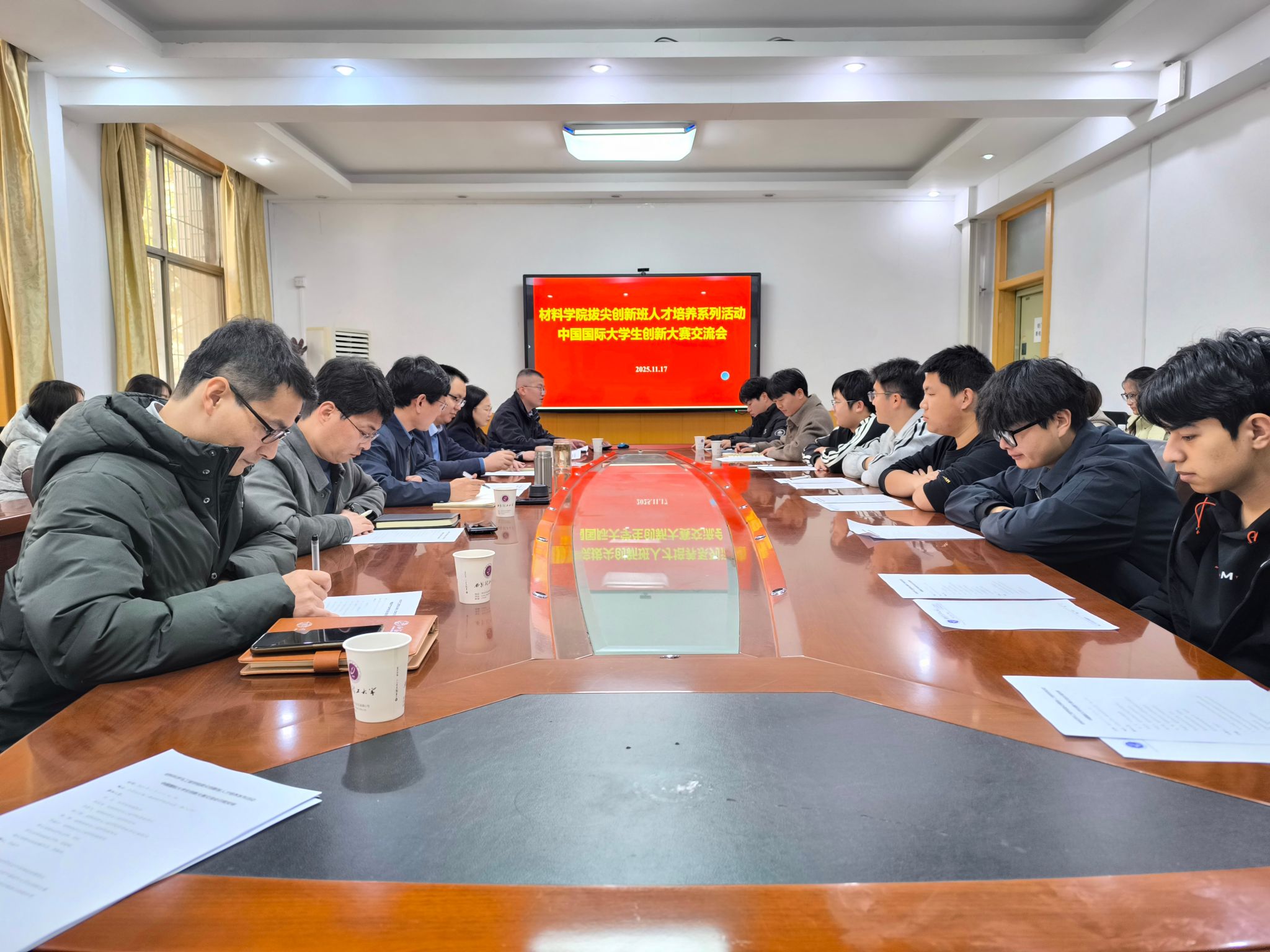 为进一步激发拔尖创新班学生的创新热情与实践活力,为后续科技竞赛储备人才,11月17日,材料学院在教二楼会议室举行中国国际大学生创新大赛交流会,材料学院党委书记邹军涛、院长李喜飞、本科生院副院长赵波、材料学院党委副书记杨少博、副院长李福平、拔尖创新班班级导师宫溢超以及拔尖创新班全体学生参加会议,会议由副院长李福平主持。