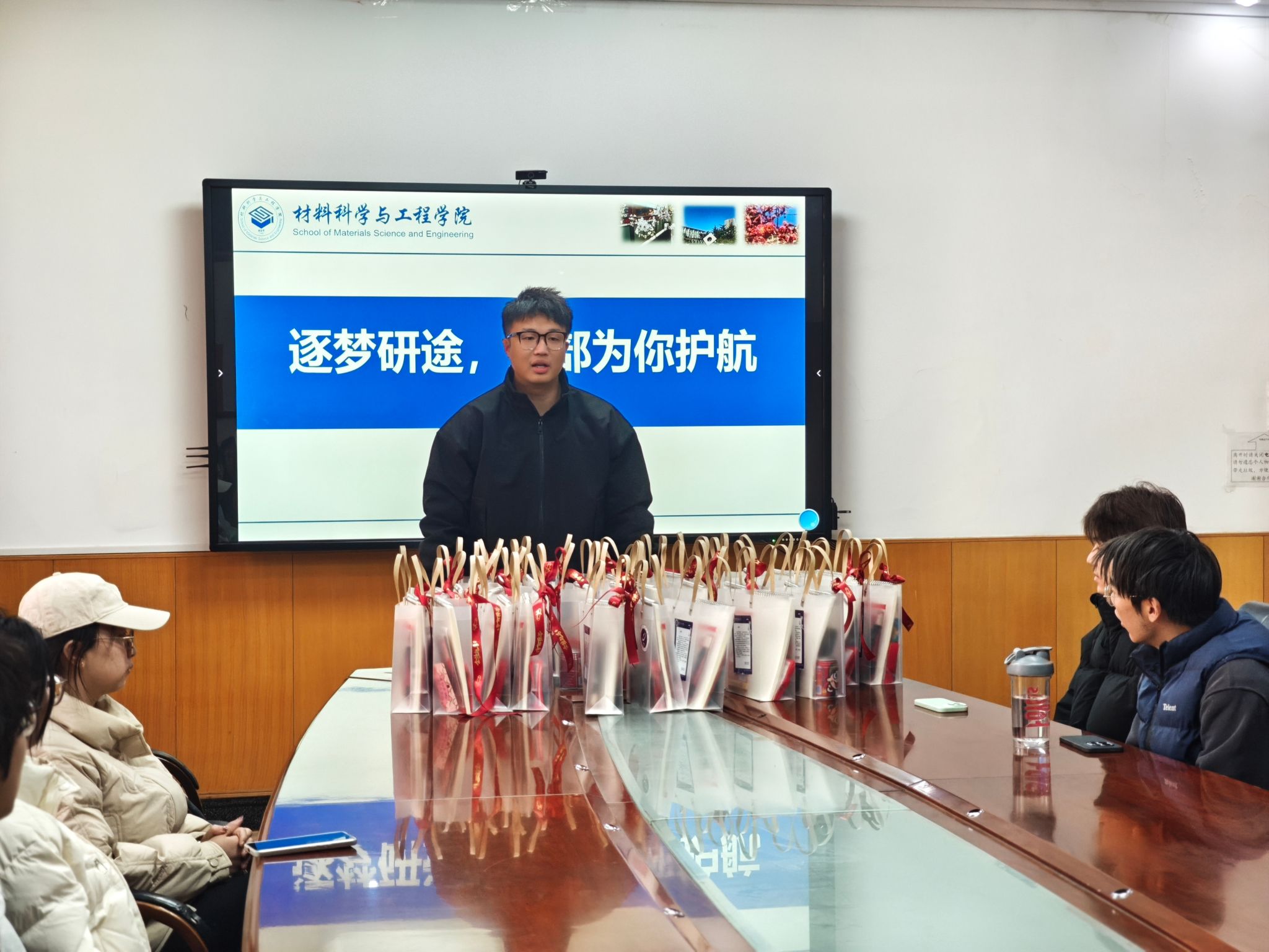 为深入践行党的初心使命,充分发挥党支部的关怀引领作用与战斗堡垒作用,切实为考研学子保驾护航,2025年12月15日,材料学院本科生第二党支部于教二报告厅举办“逐梦研途,支部为你护航”主题党日活动,向即将参加硕士研究生招生考试的2022级本科生党员、积极分子送上定制化关怀与助力,为学子们的冲刺备考之路注入温暖力量。